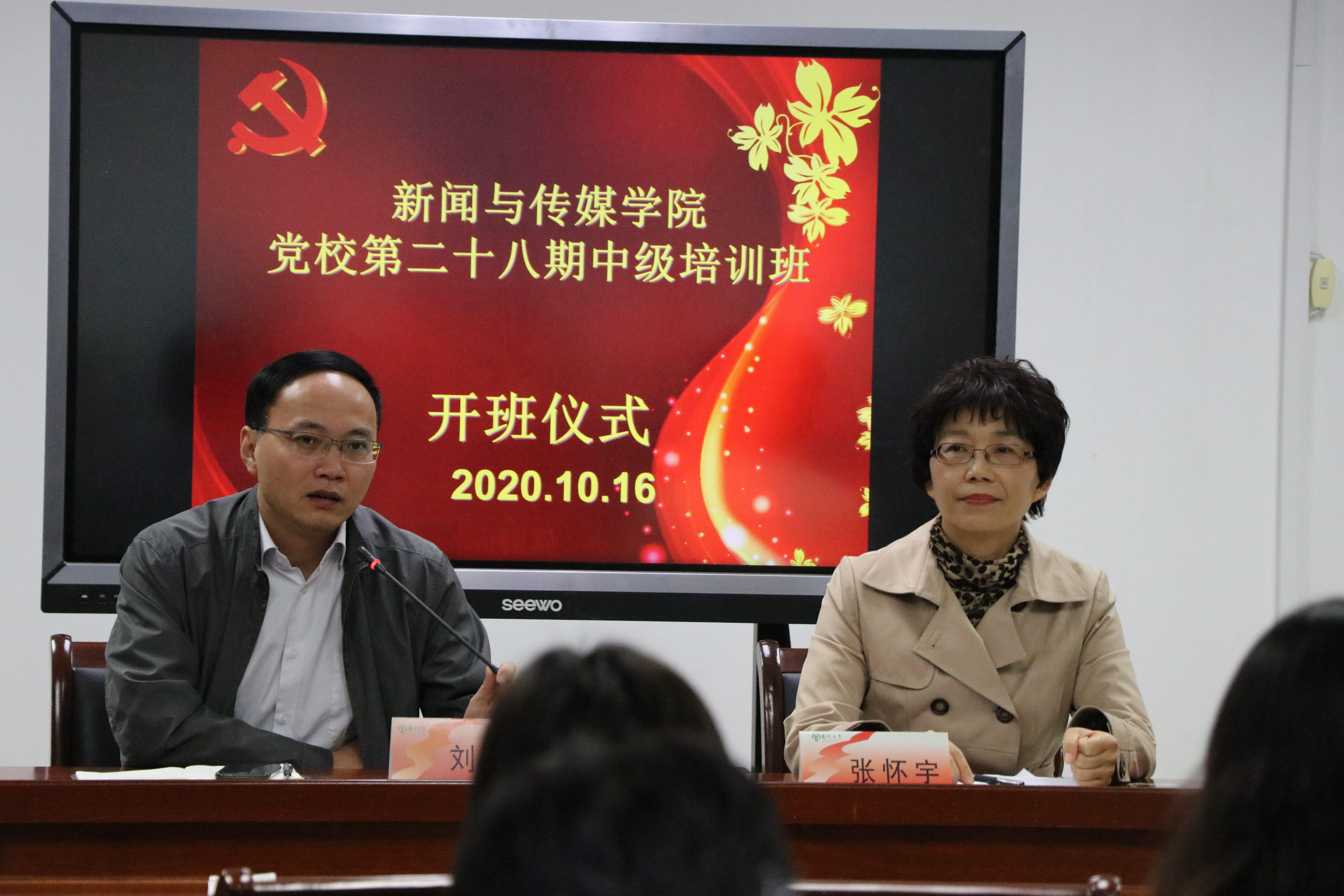 学院于10月16日下午在1113报告厅举办院分党校第二十八期中级培训班开班典礼。会议由学院组织员、纪检员张怀宇老师主持,她详细介绍了培训课程设置、培训内容等。院党委副书记、院分党校副校长刘长平老师进行了开班动员。