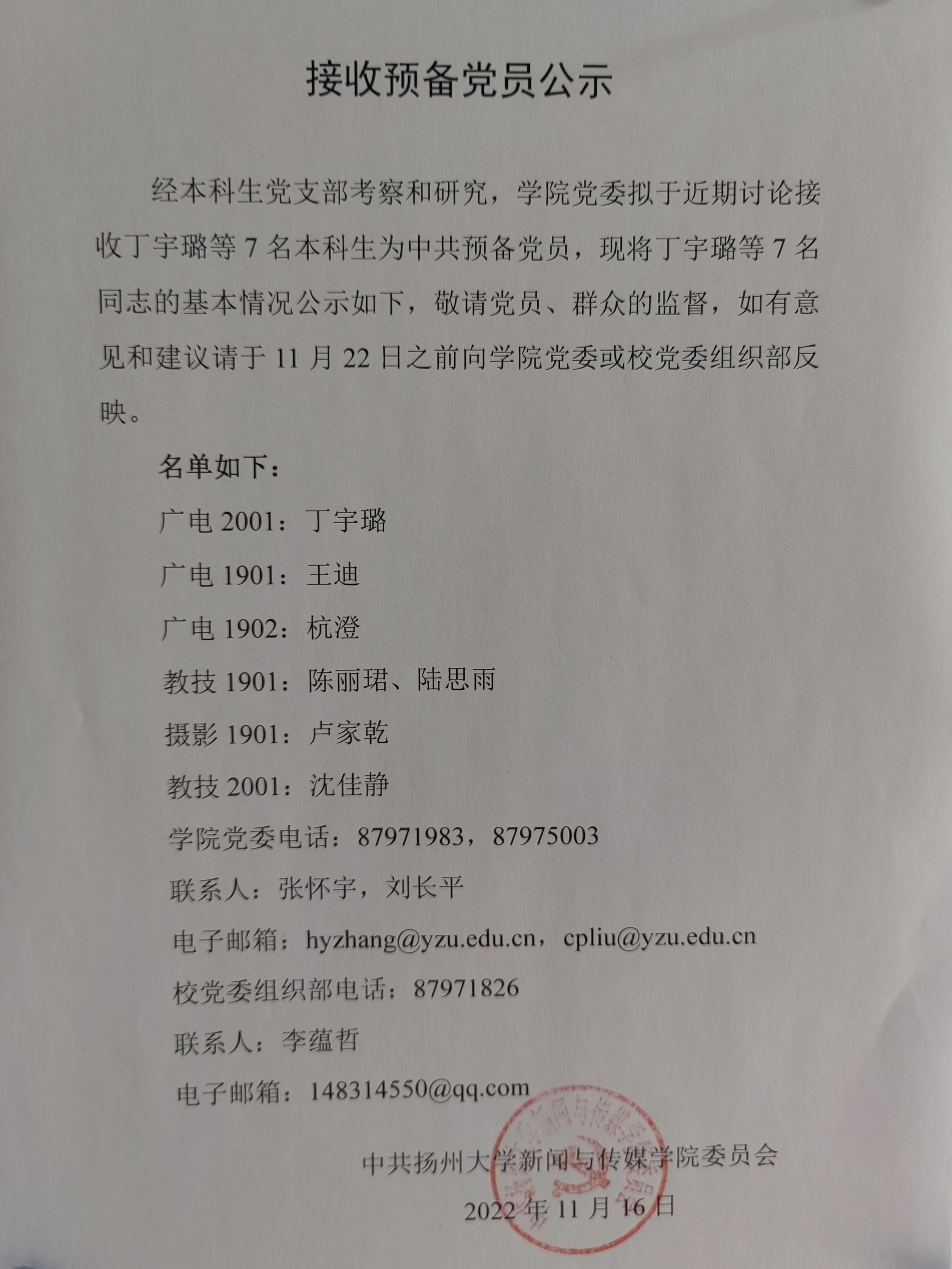 院长信箱:zhanghao@yzu.edu.cn地址:扬州市大学南路88号(荷花池校区)电话:0514-87975015Email:xcxy@yzu.edu.cn