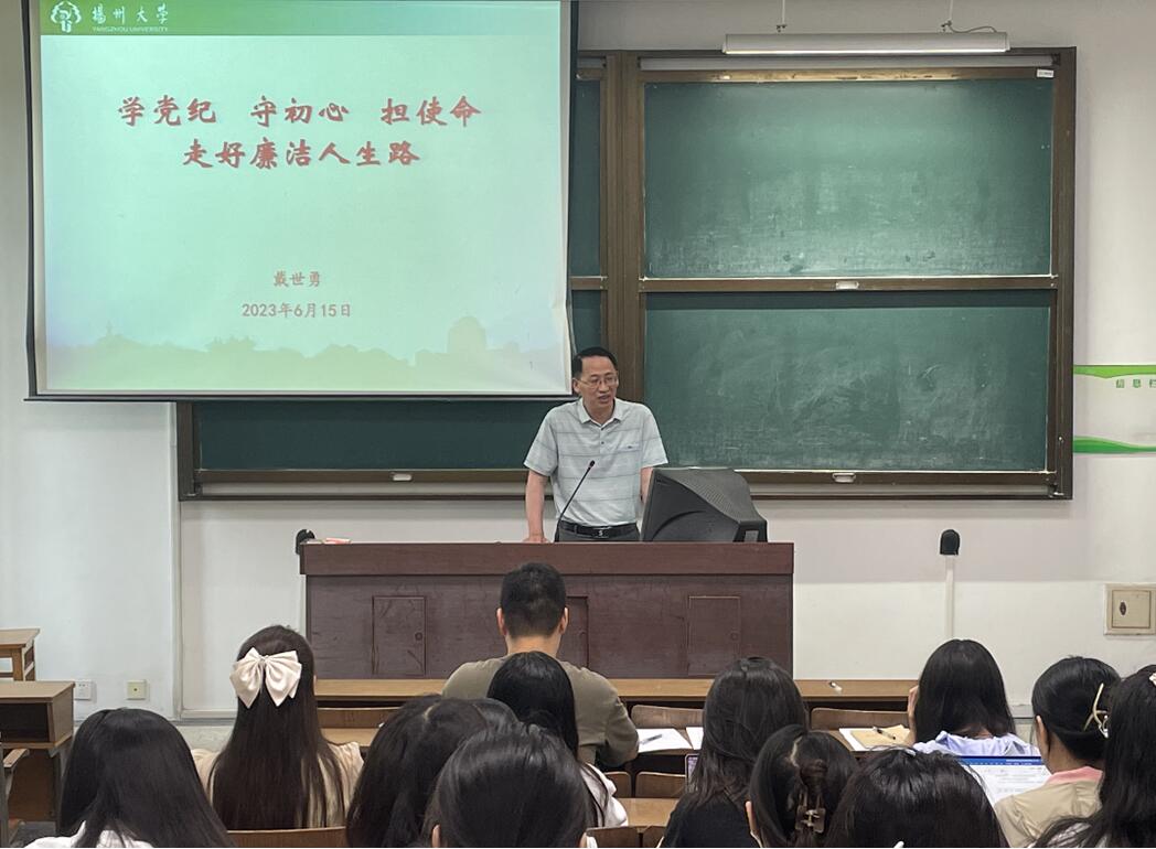 为进一步加强毕业生党员党性教育和廉洁自律意识,引导毕业生党员扣好廉洁从业第一粒扣子,6月15日,我院举办2023届毕业生党员廉洁教育专题讲座,食品科学与工程学院党委书记戴世勇作了题为“学党纪 守初心 担使命 走好廉洁人生路”专题报告。