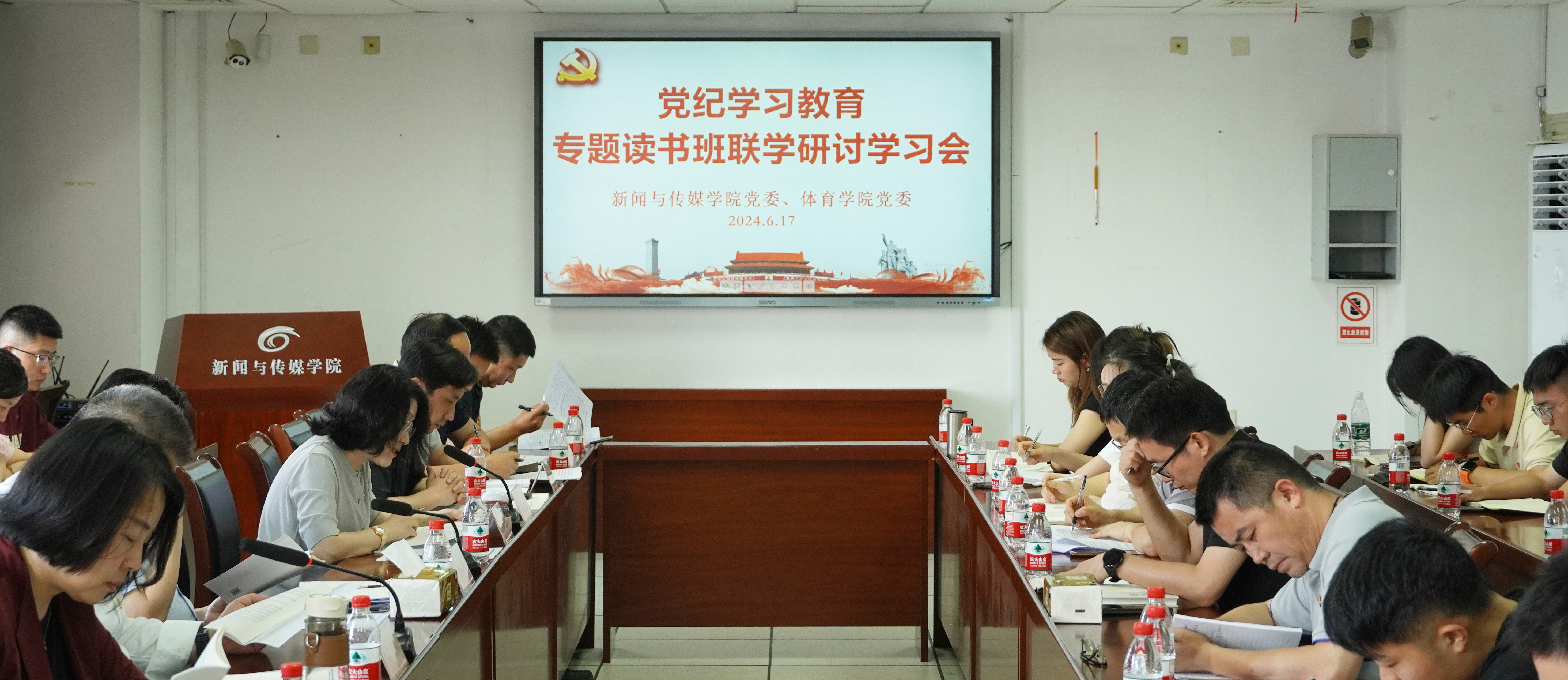 6月17日,新闻与传媒学院、体育学院在荷花池校区教学主楼1113会议室举行党纪学习教育专题读书班联学研讨会,校党委副书记周如军到会“巡学旁听”。