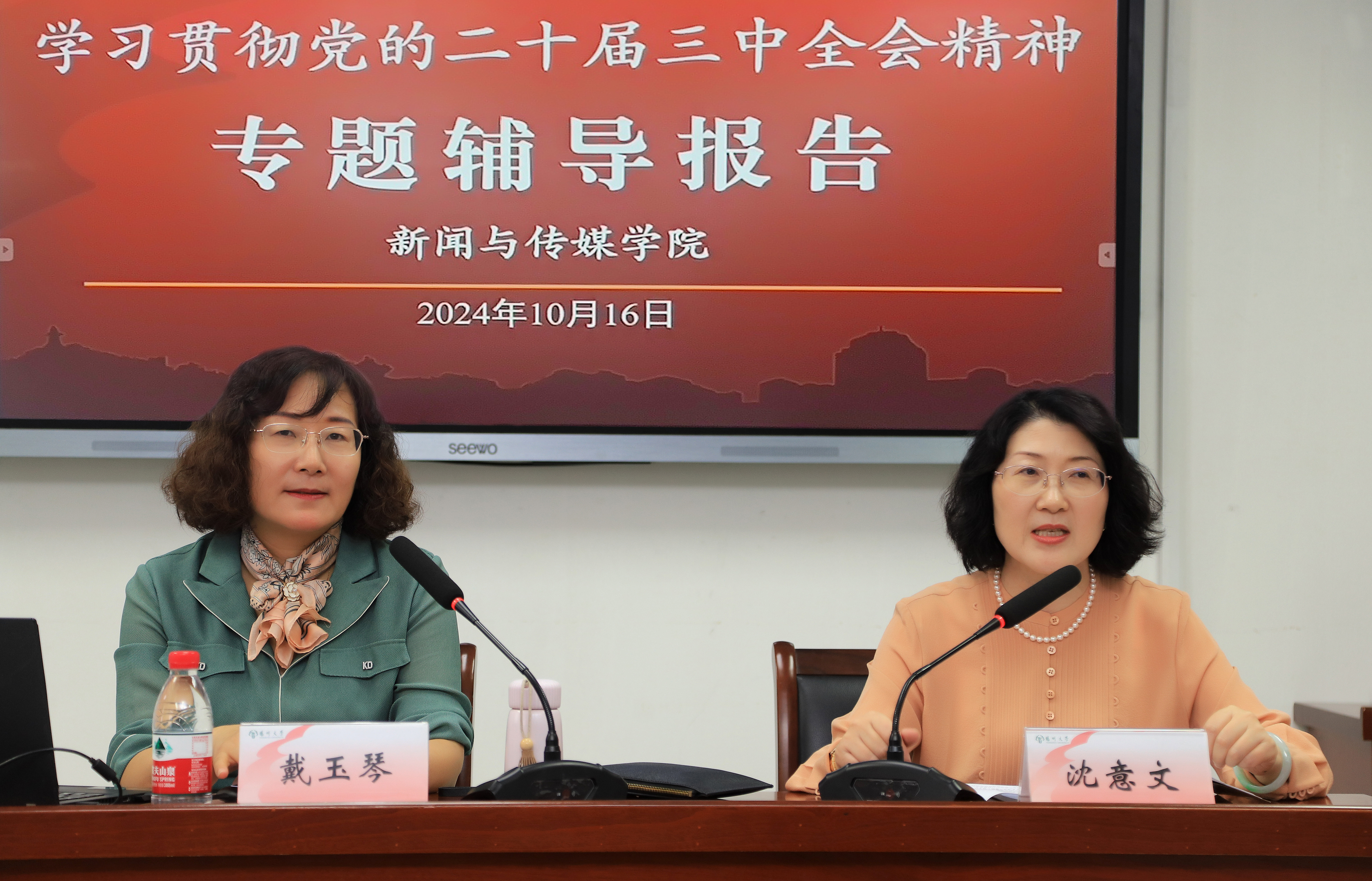 为深入学习贯彻党的二十届三中全会精神,进一步统一思想、凝聚力量,10月16日下午,学院党委举办学习贯彻党的二十届三中全会精神专题辅导报告会,马克思主义学院教授、学校学科建设办公室主任、扬州市委学习贯彻党的二十届三中全会精神宣讲团成员戴玉琴教授受邀担任主讲嘉宾,全体教职工、学生支委参加了学习。会议由院党委副书记刘长平主持。