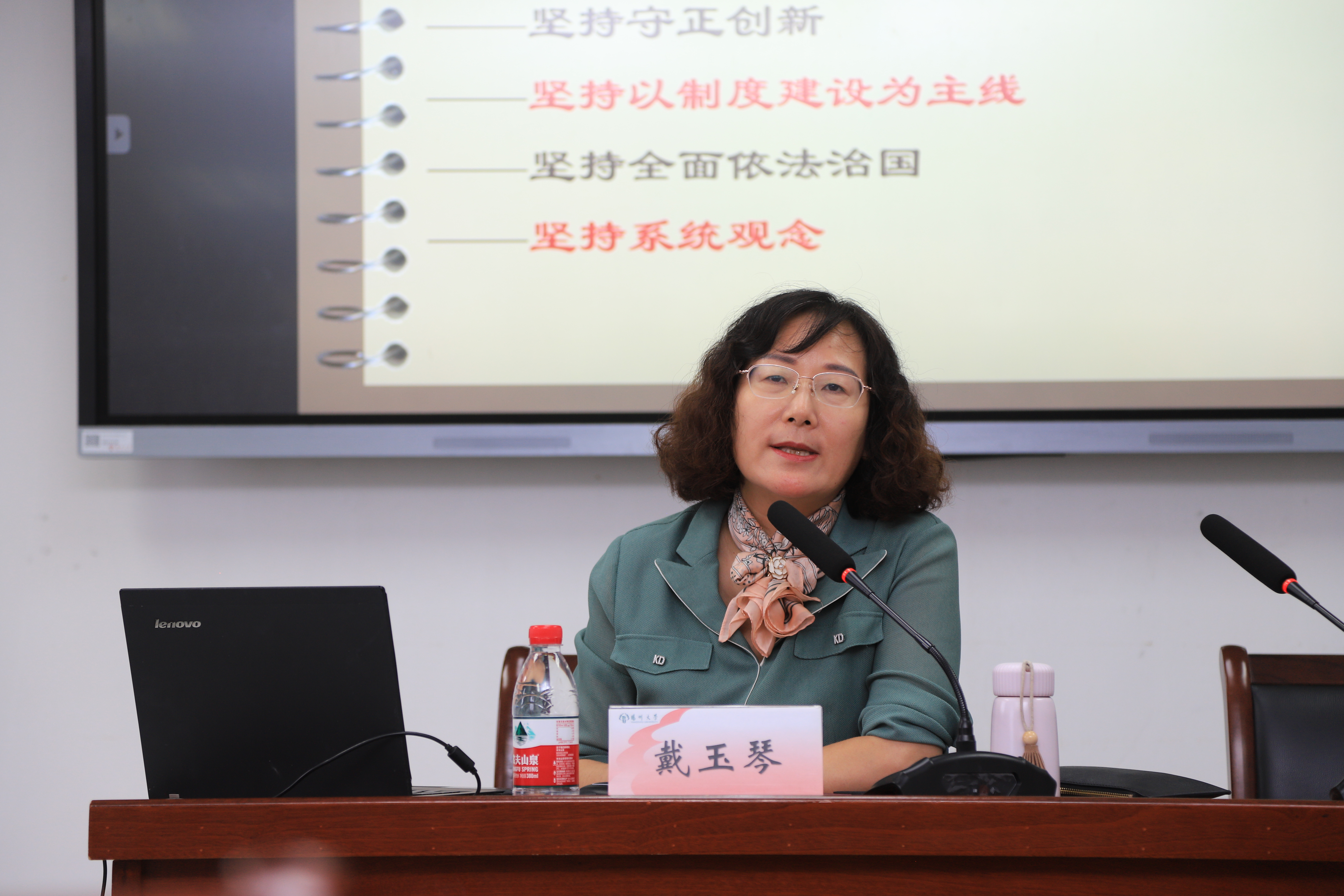 戴玉琴教授以《绘就进一步全面深化改革新蓝图——党的二十届三中全会精神解读》为题,从“深刻认识二十届三中全会召开的重大历史意义”“全面准确理解全面深化改革的重大举措”以及“全力以赴抓好全会精神贯彻落实”三个方面,系统地梳理、解读了党的二十届三中全会的主要内容、总体思路和重大意义。