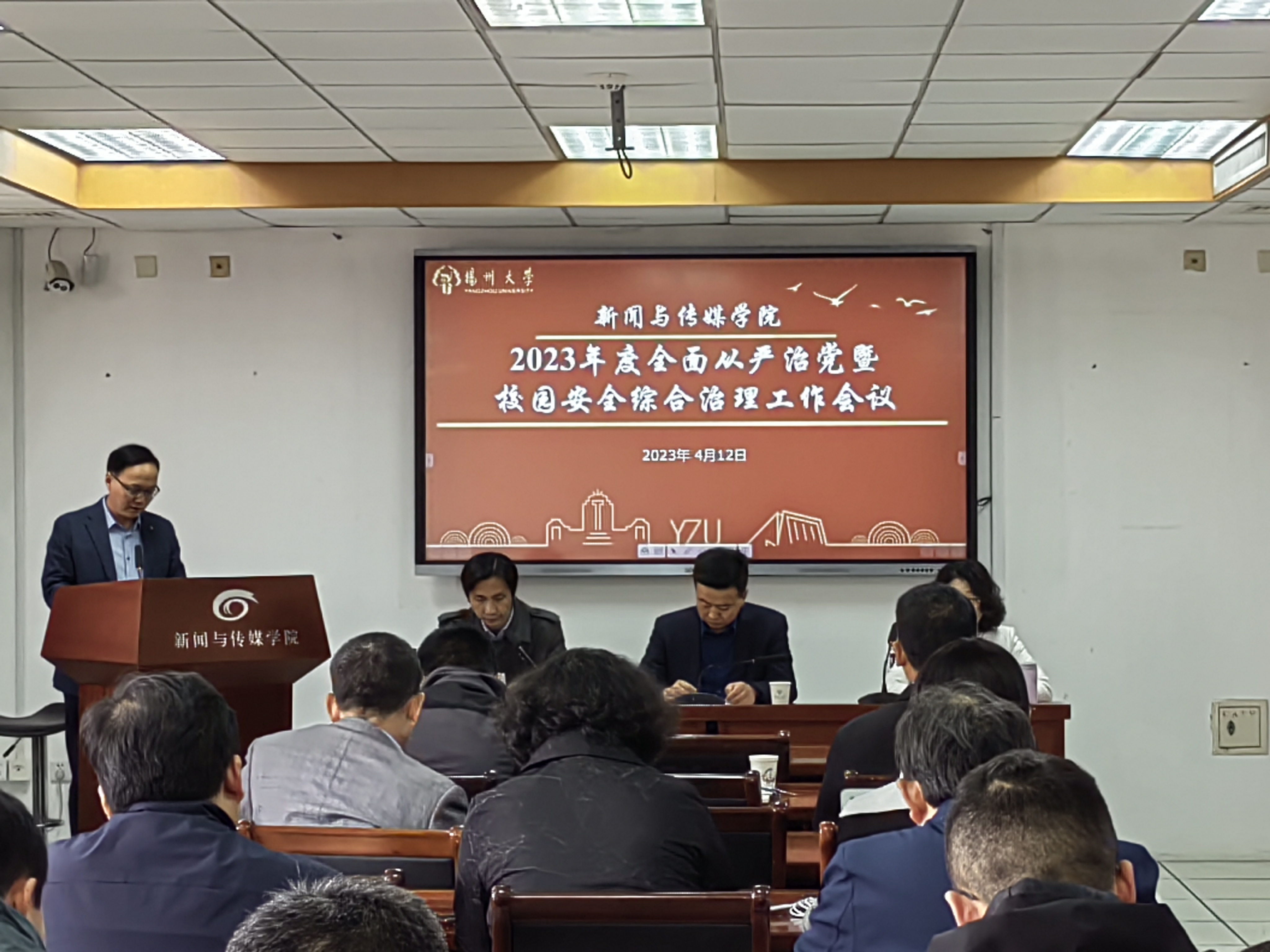 4月12日下午,新闻与传媒学院召开2023年全面从严治党暨校园安全综合治理工作教职工大会。院长张浩主持会议。