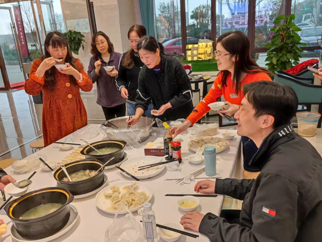 活动恰逢冬至,冬至是我国的一个传统节日,我国古代对冬至非常重视,被视为一个大节,有“冬至大如年的”说法。俗话说:“冬至到,吃水饺。” 冬至有吃饺子和喝羊肉汤的的风俗,吃了羊肉身体暖和,不怕寒冷又漫长的冬天。为了传承中华传统习俗,丰富青年教职工的生活,我院青年教师欢聚一堂,以小组为单位,分工后大家就迫不及待的挽起袖子大干起来,不一会花样繁多、精巧别致的水饺就包好了。随着一笼笼的水饺下锅起锅,老师们品尝着自己亲手包的水饺脸上都洋溢着灿烂的笑容。