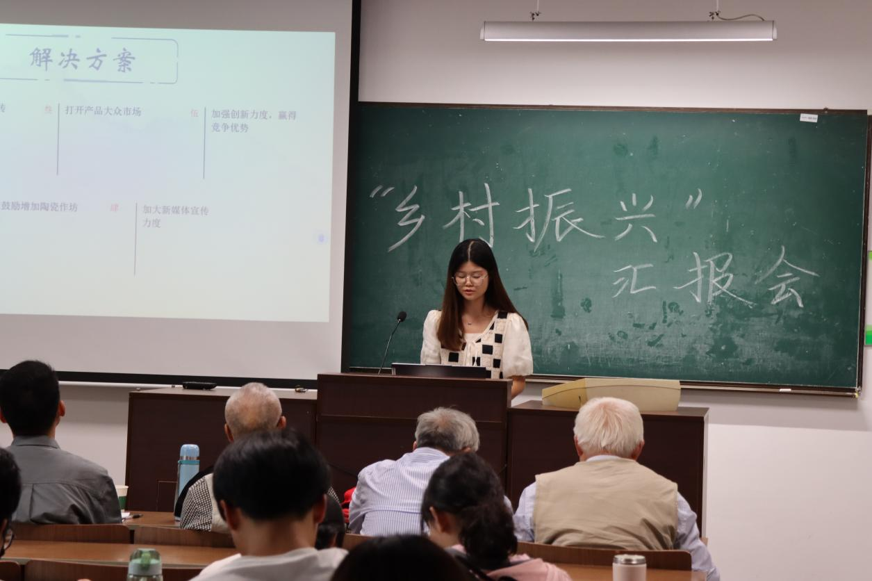 实践是检验真理的唯一标准。立足于问卷调查、文献研究、实地调研等方法,9位优秀调查报告汇报同学结合收集到的数据和信息,进行总结汇报,探析乡村发展的现状和未来走向,和现场听众共同绘就希望与未来的蓝图。王心慈团队深挖“技术富农”,探究产业链视角下新技术促进农民共同富裕的发展路径,并就最终的调查结果形成分析报告;周杨同学以家乡现有的乡村振兴成果为基准,研究目前乡村发展中还存在的薄弱环节,就此提出促进乡村宜居宜业的新举措;彭雯团队实地走访永和镇吉州窑,了解吉州窑当下的发展困境,提出打造特色非遗文化传承小镇、政策鼓励增加陶瓷作坊数量、完善基础设施建设、加大新媒体宣传力度等方法,以促进吉州窑的经济和文化价值延伸、助推永和镇乡村旅游产业发展……在这个暑期,广电2101全体同学紧跟关工委老师的指导,将青春的汗水与乡村振兴战略的实施紧密结合起来。