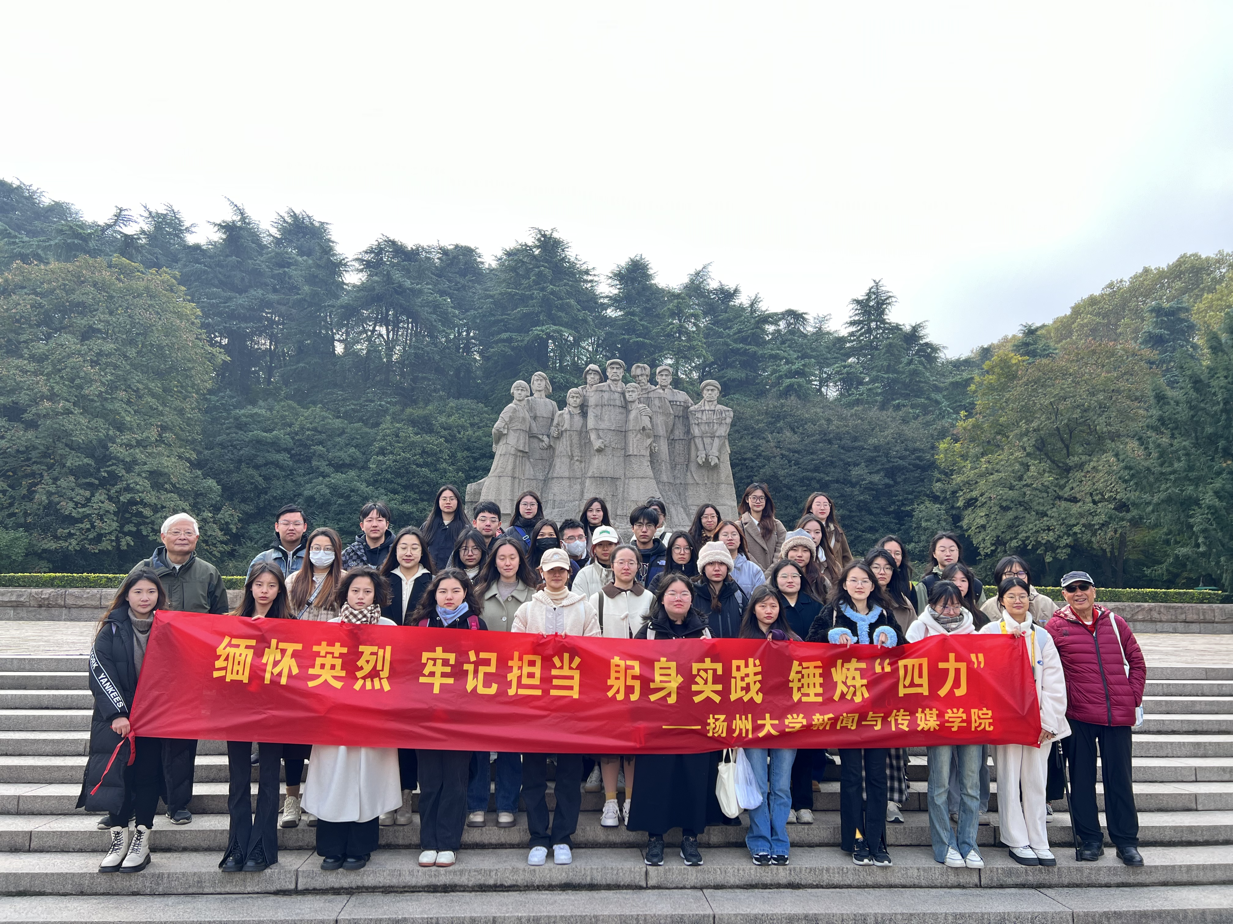 为弘扬烈士崇高精神、缅怀烈士丰功伟绩,让青年学生铭记历史、接受革命教育,形成崇尚英烈、缅怀英烈、学习英烈的良好风尚和浓厚氛围,近日,我院本科生第二党支部、广电2101班团支部前往南京雨花台烈士陵园举行“缅怀先烈,牢记担当,躬身实践,锤炼‘四力’”主题班团活动。院关工委结对共建班级指导老师校关工委理论宣讲团严公宝教授,院关工委副主任孙放教授,辅导员及青年学生代表共四十余人参加活动。