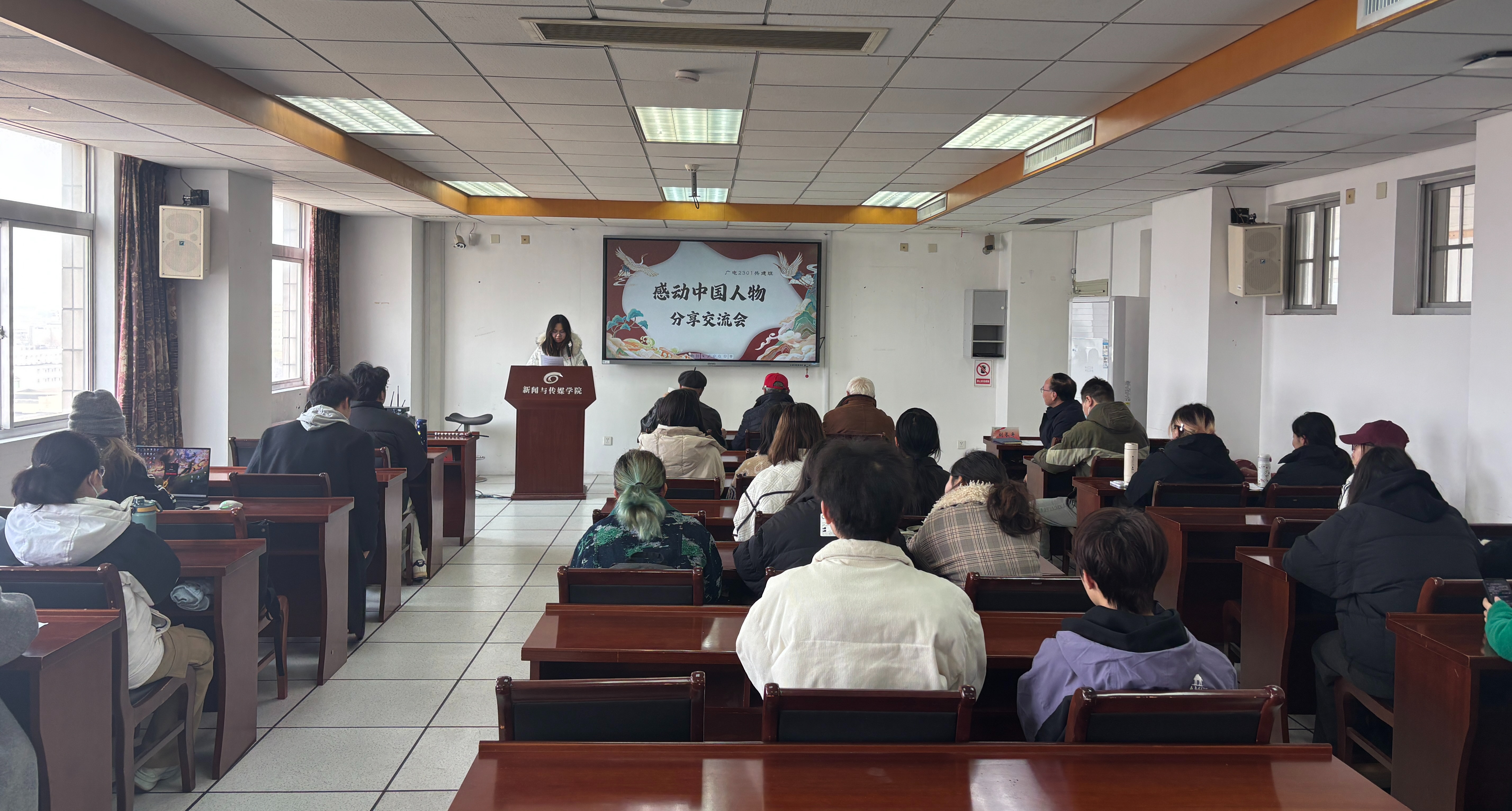 2月26日下午,我院关工委结对共建班级广电2301班在荷花池校区教学主楼1113会议室举办了感动中国人物精神事迹分享交流会。活动以“致敬榜样力量,传承精神火炬”为主题,遴选出的10位学生代表通过分享观看感动中国人物颁奖典礼的所思、所感、所想,展开了一场生动的思政教育实践课。校关工委顾问刘方云老师、校关工委理论宣讲团严公宝教授、院党委副书记、关工委主任刘长平老师、院关工委副主任孙放老师出席活动。