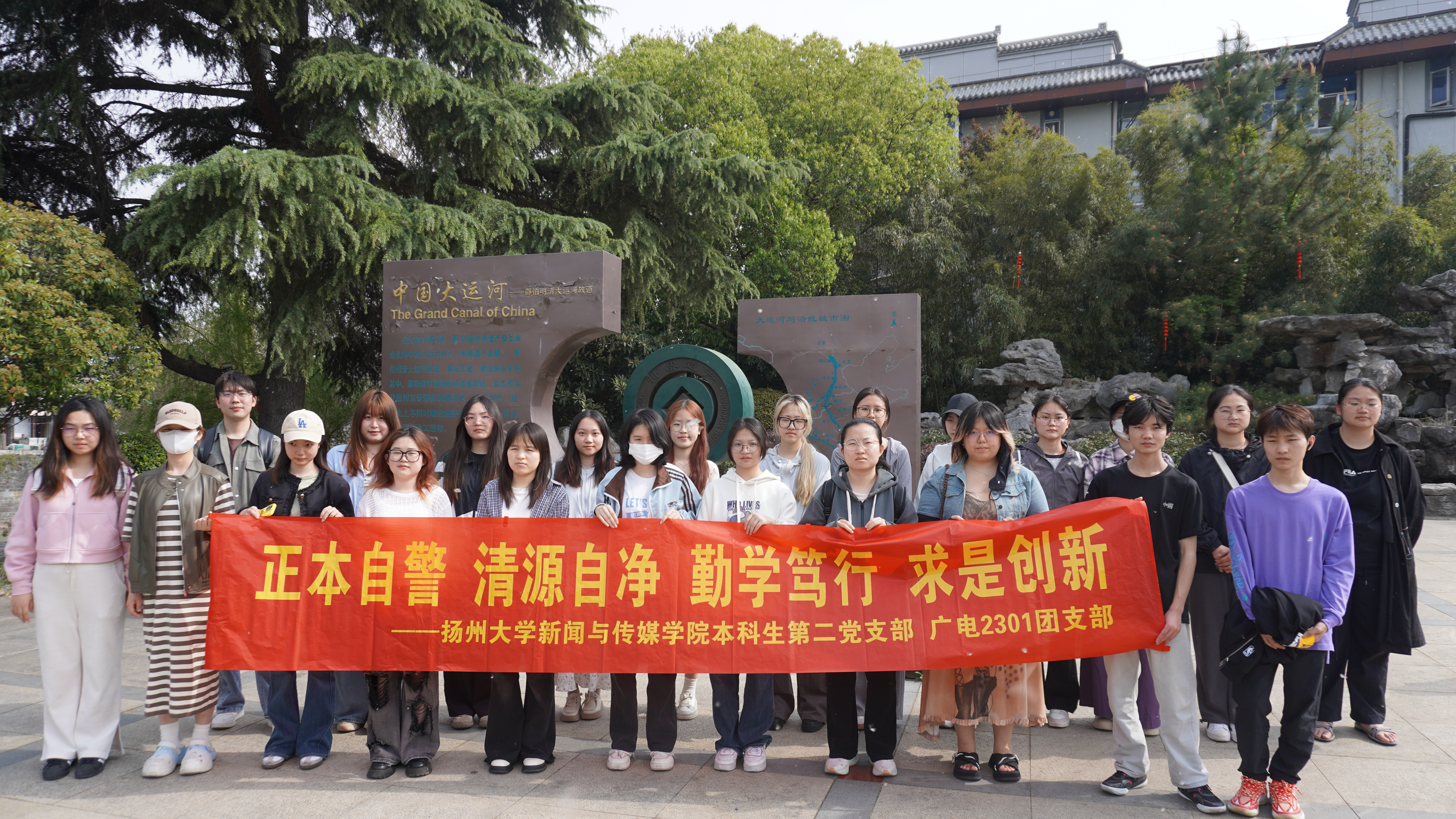 4月9日下午,我院本科生第二党支部联合关工委共建班广电2301班赴邵伯船闸枢纽、铁牛湾遗址及南水北调东线源头公园开展“正本清源”实践研学教育活动。校关工委理论宣讲团严公宝、院关工委副主任孙放和辅导员老师参加活动。