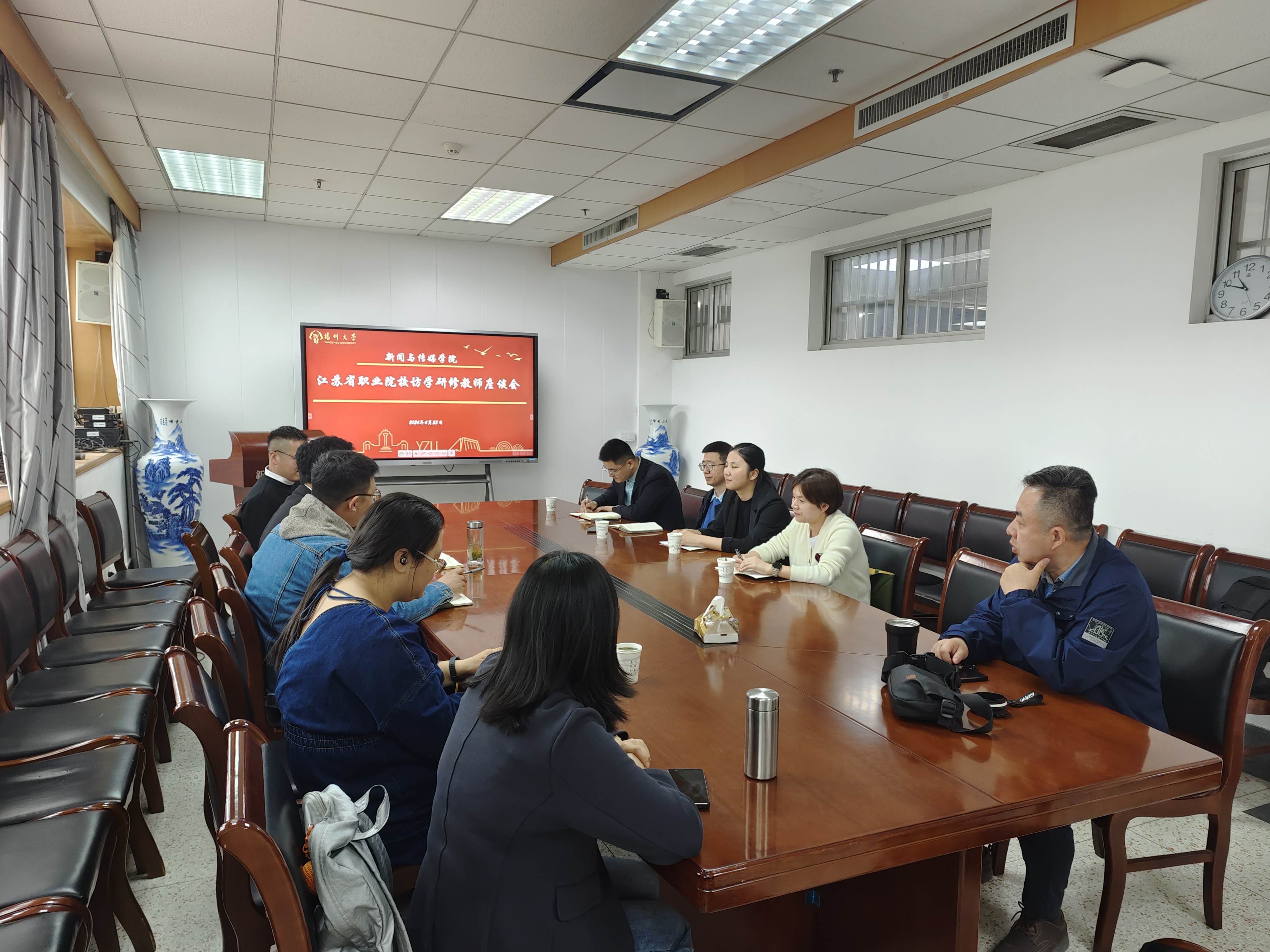 张诚对来我院访学研修的教师表示欢迎,并介绍了学院的历史沿革、基本情况及近年来取得的办学成果。他希望大家珍惜研修机会,根据访学研修工作任务与个人具体安排,在指导老师的指导下,围绕班级授课、论文写作、项目申请、学术交流、技能大赛等方面开展全面的研修。同时学院将努力为访学研修教师成长搭建交流平台,做好后勤服务保障,助力访学研修任务圆满完成。5位研修教师分别汇报了来到扬州大学后,在教学、研究、合作等方面取得的进展、成绩以及今后的工作打算。相关指导老师分别就前期研修指导和后期工作规划进行了发言交流。