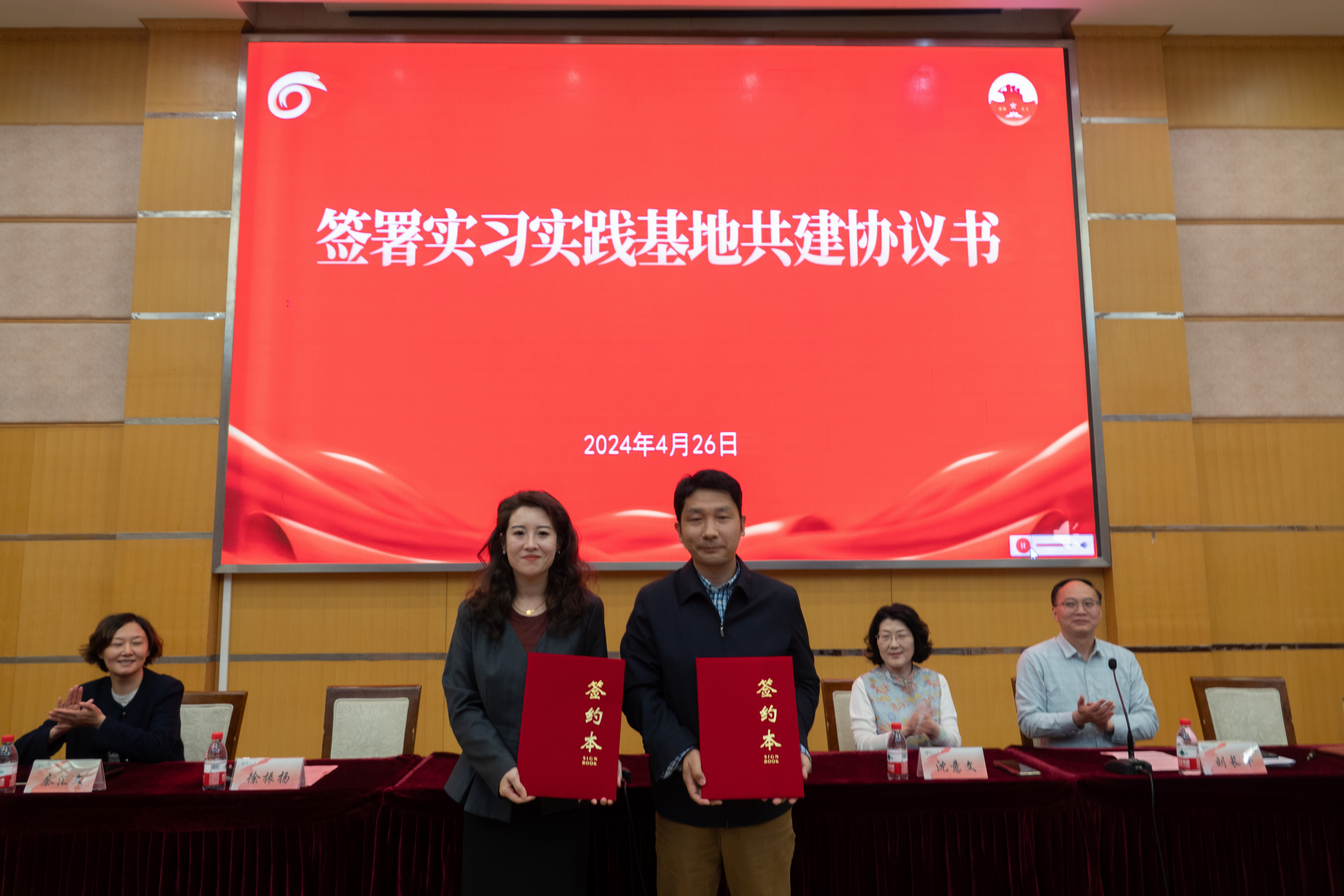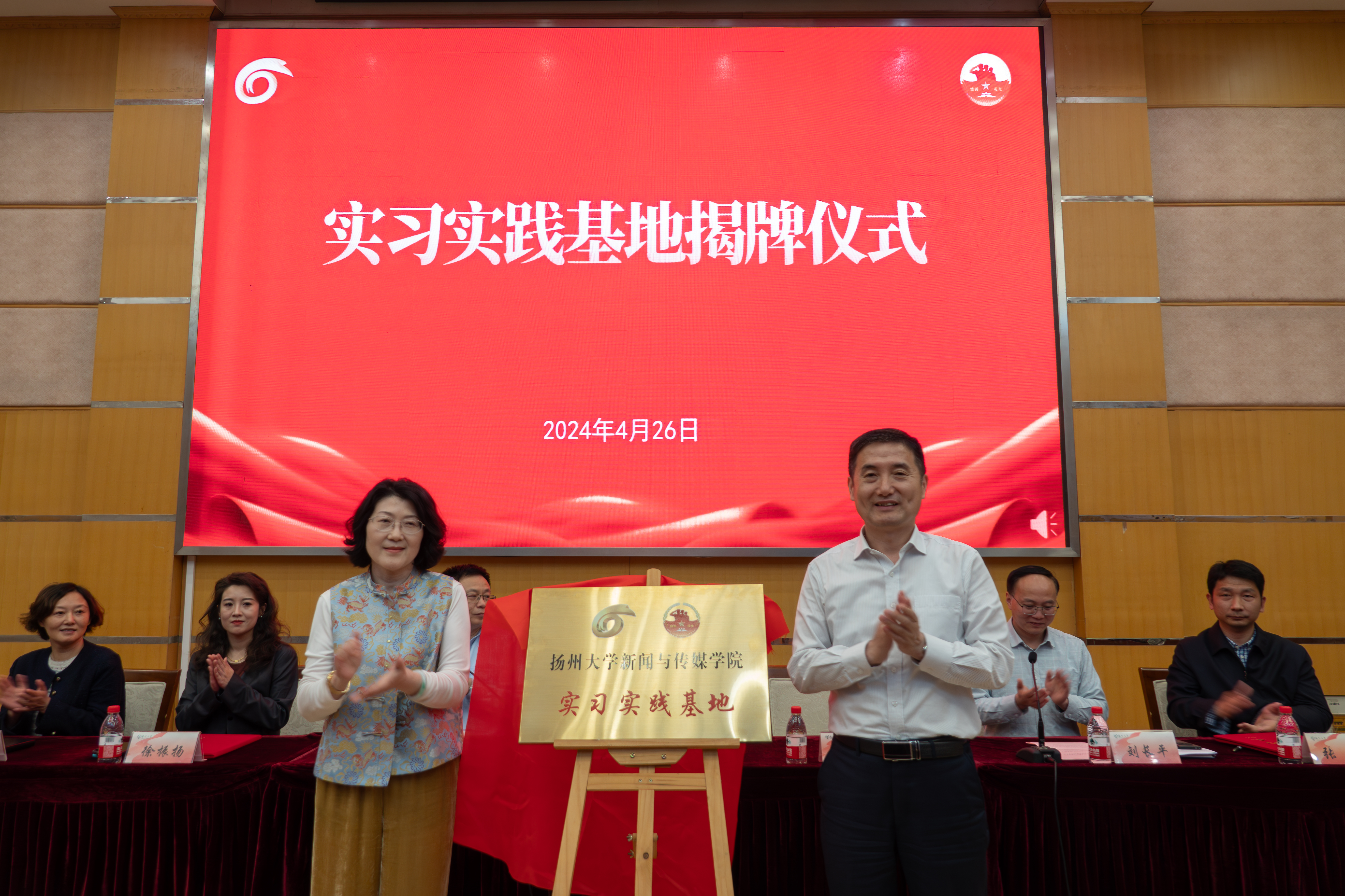 双方签署了合作共建协议书,院党委书记沈意文和扬州市退役军人事务局党组书记、局长陆志林共同为实习实践基地揭牌。