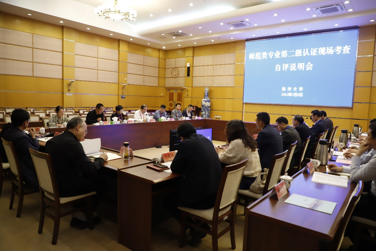5月8日上午,专业认证自评说明会在荷花池校区教学主楼二楼多功能厅举行。校党委书记焦新安、副校长王承堂出席了会议,专家组全体成员、江苏省教育评估院师范专业认证项目负责人、校相关职能部门负责人、学院党政领导班子、认证专业负责人及师生代表参加了会议。