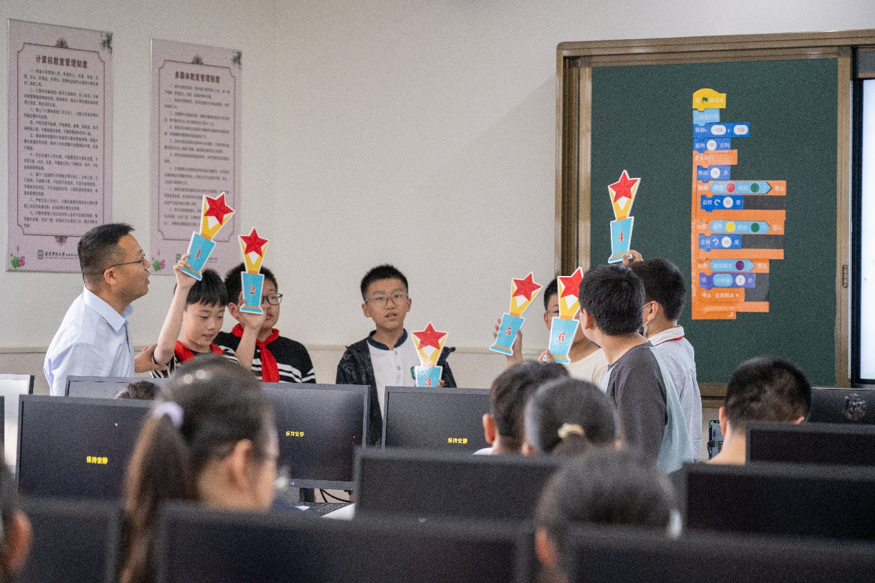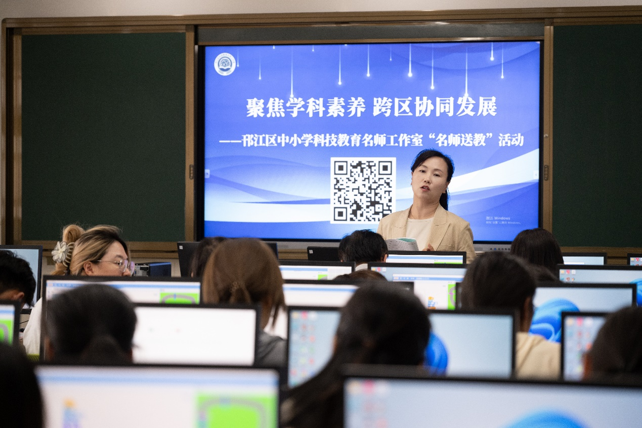 5月29日下午,我院教育技术学2201班学生由沈霞娟老师带队前往南京师范大学附属邗江实验小学开展教育见习活动。本次教育见习与 “新课标视域下的科技教育”的邗江区中小学名师工作室“名师送教”活动紧密结合,为师范生创造了近距离观摩中小学优秀教师示范授课的真实环境。见习活动由示范授课、评课议课和专题讲座三个环节构成,邗江实验学校邗上分校杨艳书记、南京师范大学附属邗江实验小学张义兵校长、邗江区小学信息科技教师代表、中小学科技教育名师工作室成员、教技2201班全体学生等,共计70余人参加此次活动。