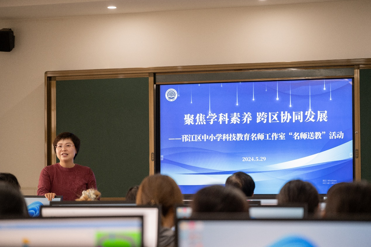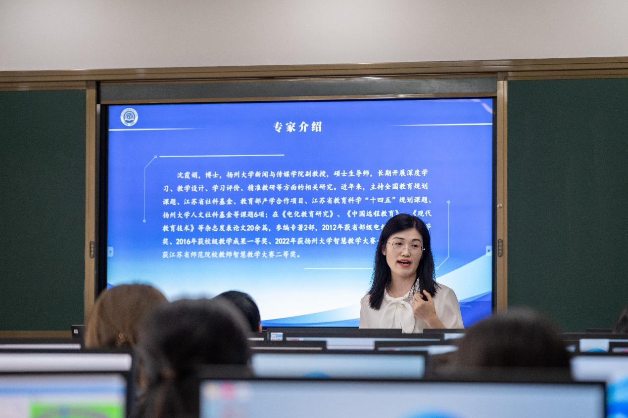 在评课议课环节,首先邗江实验学校邗上分校杨艳书记对本次活动进行了整体点评,明确了本次名师送教活动聚焦学科素养、跨区协同发展的总体思路。