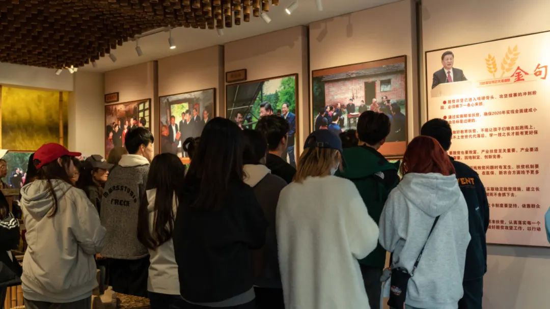 大湾村,地处金寨县花石乡,曾是最为贫困的乡村之一。2016年4月24日,习近平总书记来到金寨县花石乡大湾村考察脱贫工作,走访了贫困户,在农家院落同村民们亲切交流。“全面建成小康社会,一个不能少,特别是不能忘了老区,老区人民养育了我们。”总书记的殷殷嘱托深深扎根在老区干部和人民的心田。8年来,大湾村走生态、绿色的新质发展道路。除了茶、木耳、天麻、有机灵芝等生态种植产业,还有“光伏大棚+智慧农业”的新型模式。红色资源也成为大湾村发展的重要推动力,村里的苏维埃政权旧址成为旅游景点,建成了农耕文明博物馆,年接待游客达数十万人次。如今的大湾村青山绿水、楼房成排。同学们走进农耕文明博物馆,从陈列的一件件农具中读解乡土文化;游客接待中心,讲解员汪老师给同学讲述总书记走访大湾村的细节和今昔变化。同学们来到总书记和村民的座谈处——村民陈泽申家的院子里,听陈泽申讲述总书记的亲切关怀和生活变化。大湾村在乡村振兴的道路上正阔步前进。