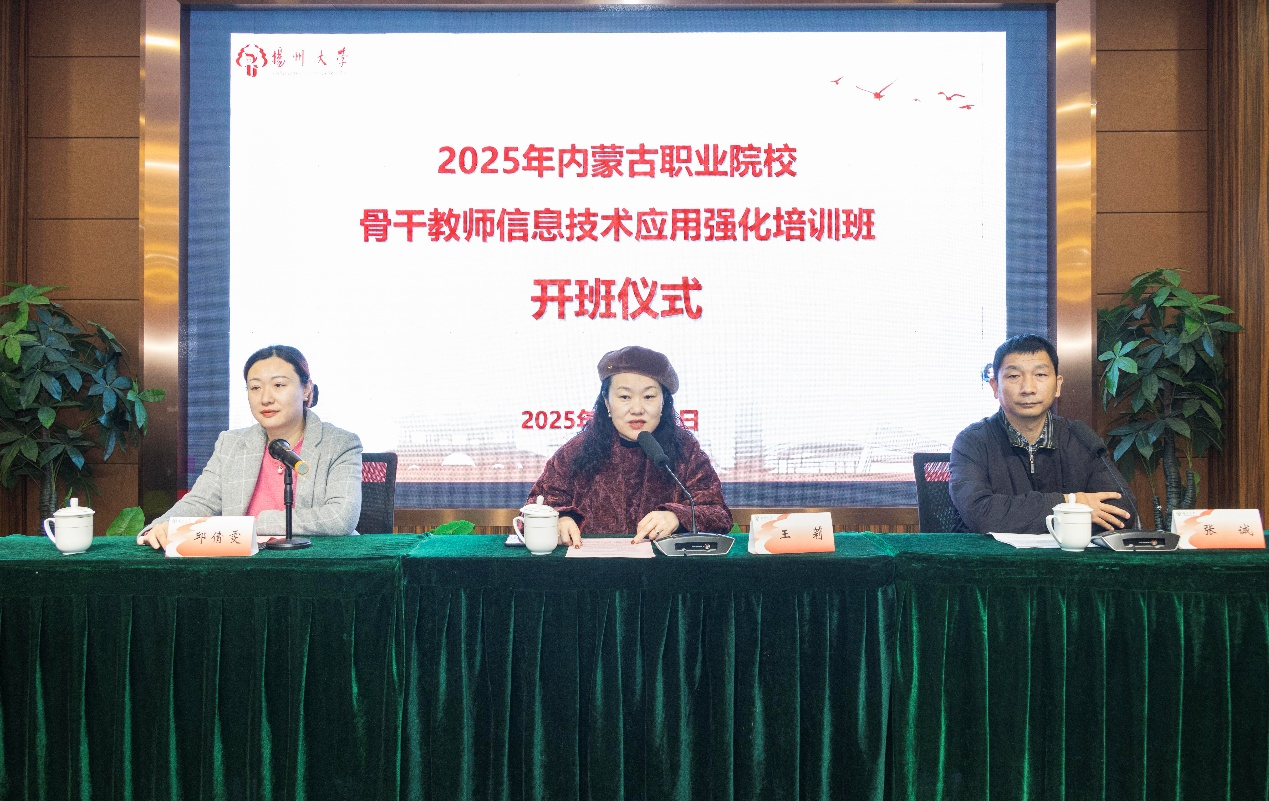 2025年12月16日上午,由扬州大学承办的“2025年内蒙古自治区职业院校教师素质提高计划项目——骨干教师信息技术应用强化培训班”开班仪式在扬州大学隆重举行。扬州大学继续教育学院副院长王莉、扬州大学新闻与传媒学院副院长张诚、培训班班主任以及来自内蒙古自治区各中、高职院校的106名骨干教师参加了本次活动。仪式由新闻与传媒学院办公室主任邱倩雯主持。