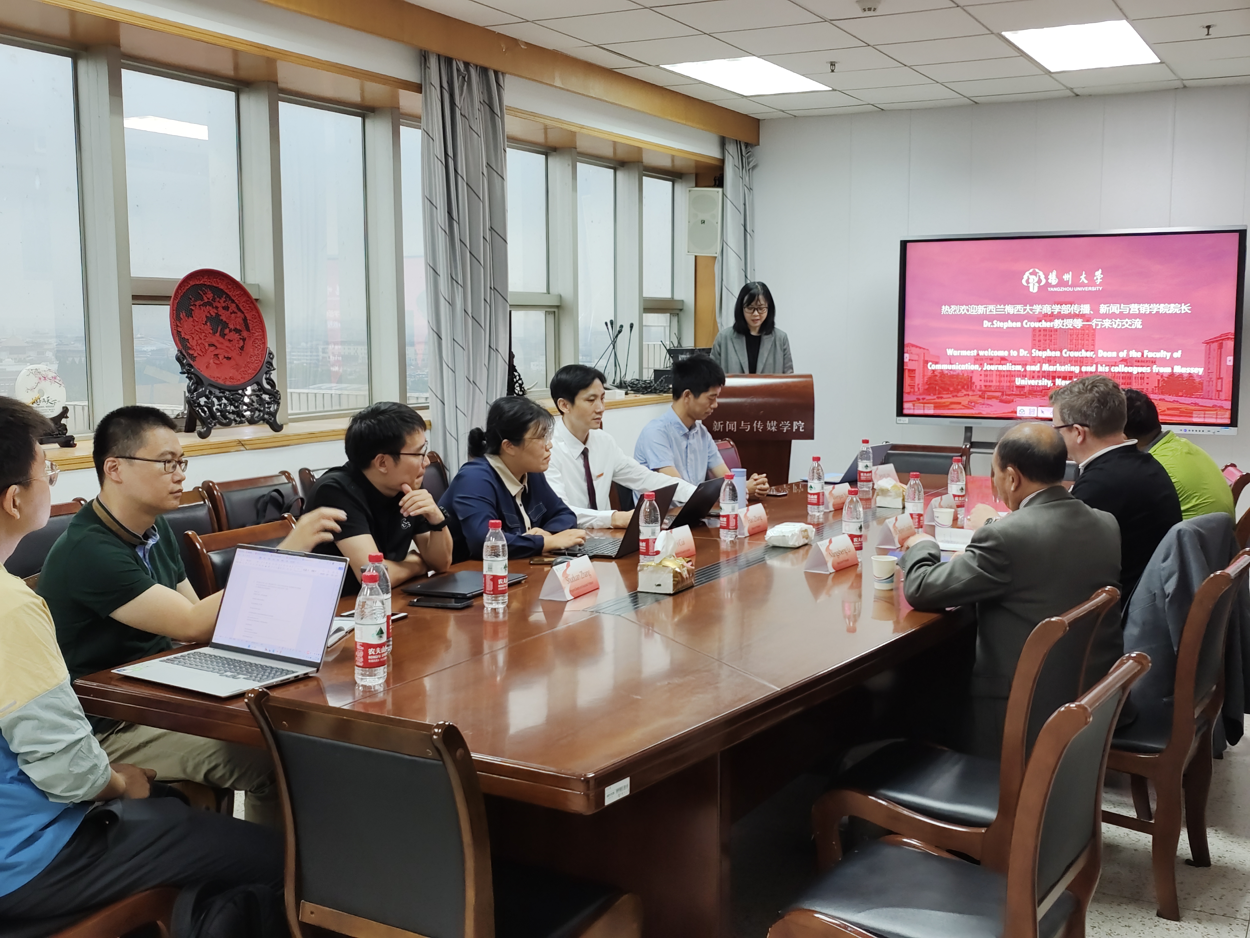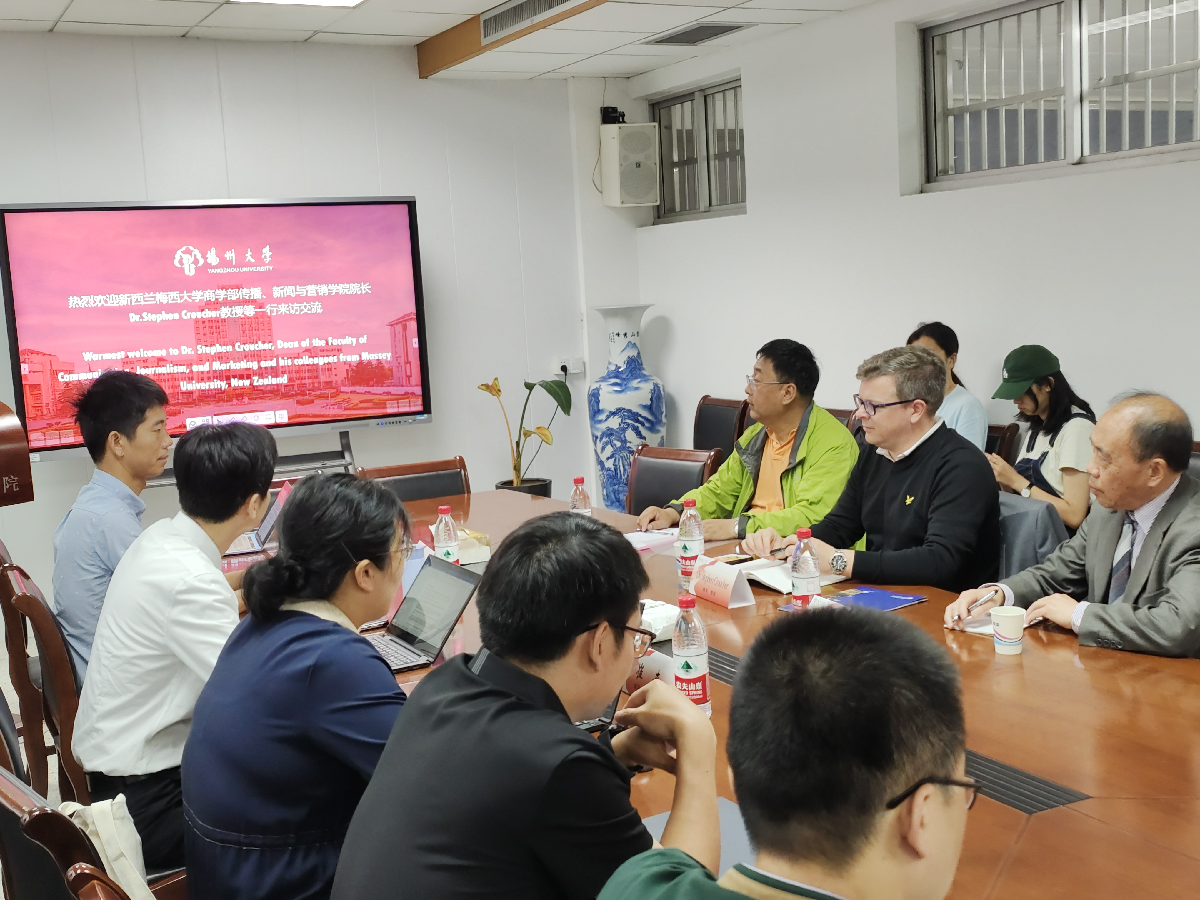 9月16日,新西兰梅西大学商学部传播、新闻与营销学院斯蒂芬·克劳彻院长、黎明生副教授应邀来我院进行交流访问。我校国际处国际教育科崔卉科长、我院张浩院长、虞文俊主任、张书端主任、蔺诗杰等老师代表以及外国语学院田德新教授出席交流会。