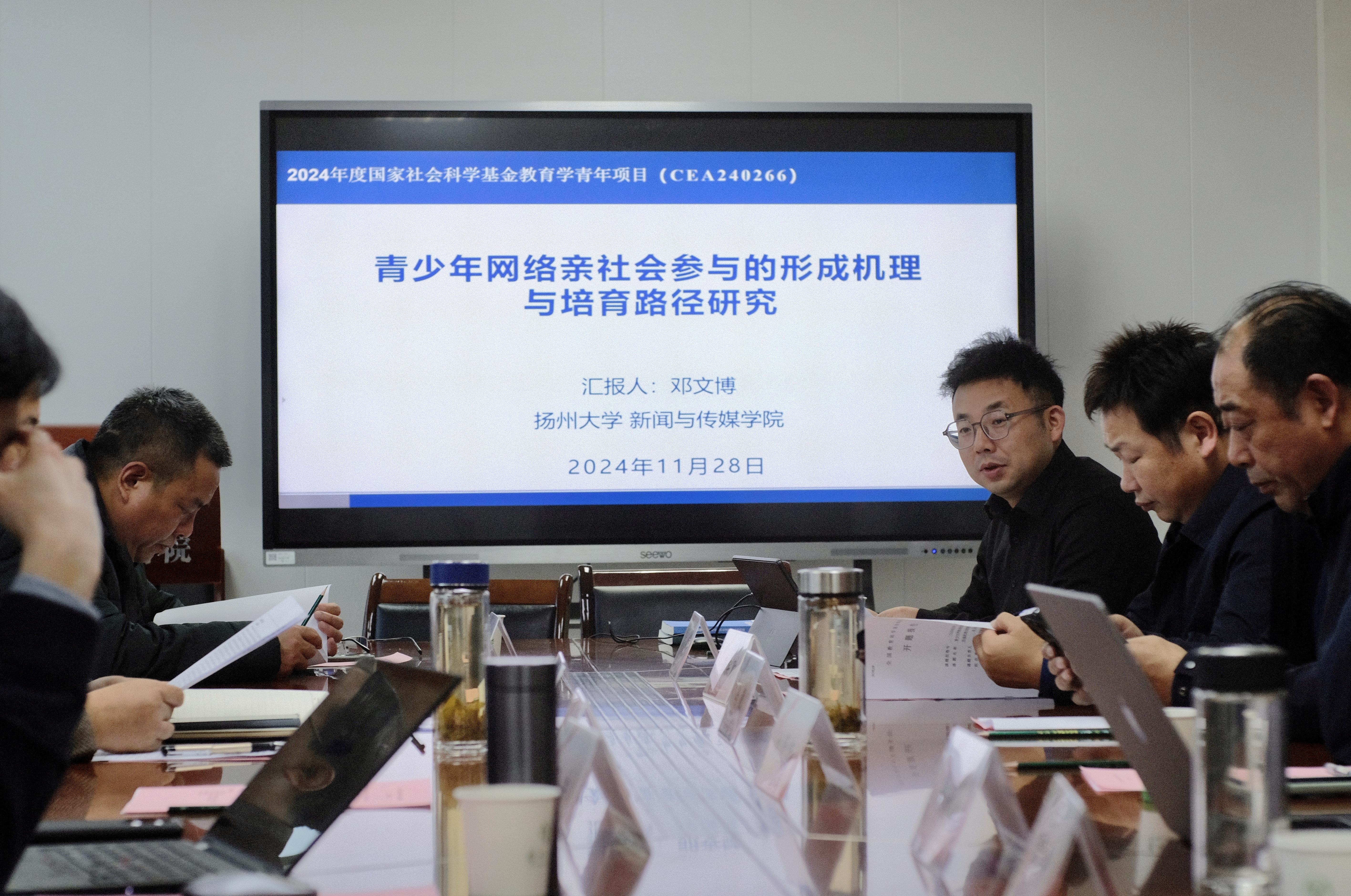 11月28日下午,在扬州大学人文社科处的指导下,我院在荷花池校区主楼1509召开国家社科基金教育学项目《青少年网络亲社会参与的形成机理与培育路径研究》开题论证会。