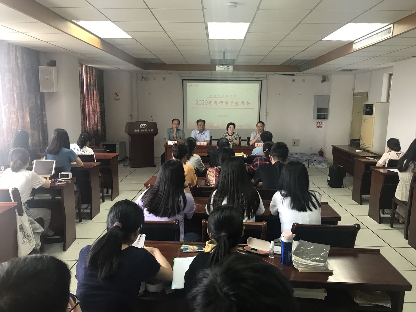 8月20日下午,我院在教学主楼1113会议室举办了2020年考研学子慰问会。院党委书记沈意文、院长冯锐、院党委副书记刘长平、班主任代表(校党委宣传部副部长)戴世勇等各位老师亲切慰问暑期留校复习考研的学子们。