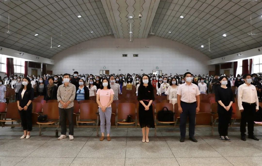 9月30日下午,我院在文汇路校区大礼堂隆重举行2020级新生开学典礼。院党委书记沈意文,院长冯锐,副院长张浩、武新宏,各专业主任、院综合办公室、团委(学工办)老师以及新生班主任出席典礼。会议由院党委副书记刘长平主持,全体2020级新生300余人参加了典礼。