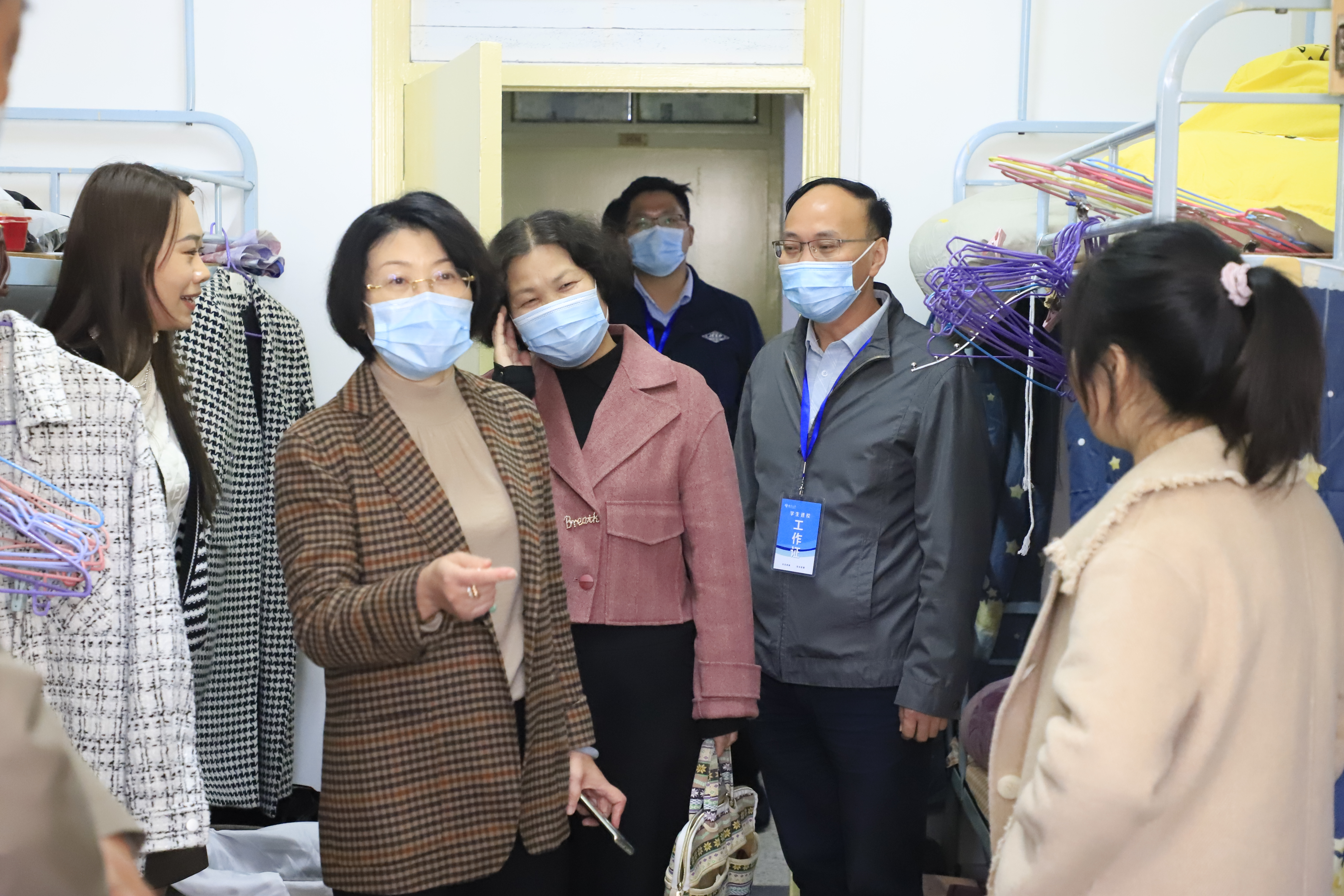 迎新结束后,全体院领导走进学生宿舍慰问新同学。嘱咐新生们要及时调整身心状态,尽快适应大学生活,以良好的精神面貌开启新的旅程。
