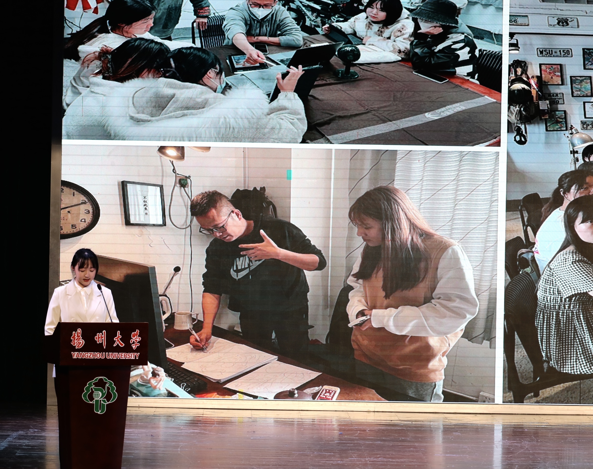 本次暑期专业创作成果汇报会共展示项目10组,涉及创意摄影、程序设计、短视频创作、平面海报设计等多个专业领域。同学们在创作过程中,充分运用专业所学,结合时事热点,创作内容涵盖了非遗文化传播、红色档案发掘、数字人文开发、AI技术应用等多个主题,充分展现了我院学子丰富的创作灵感、过硬的专业技能和自觉的青春担当。