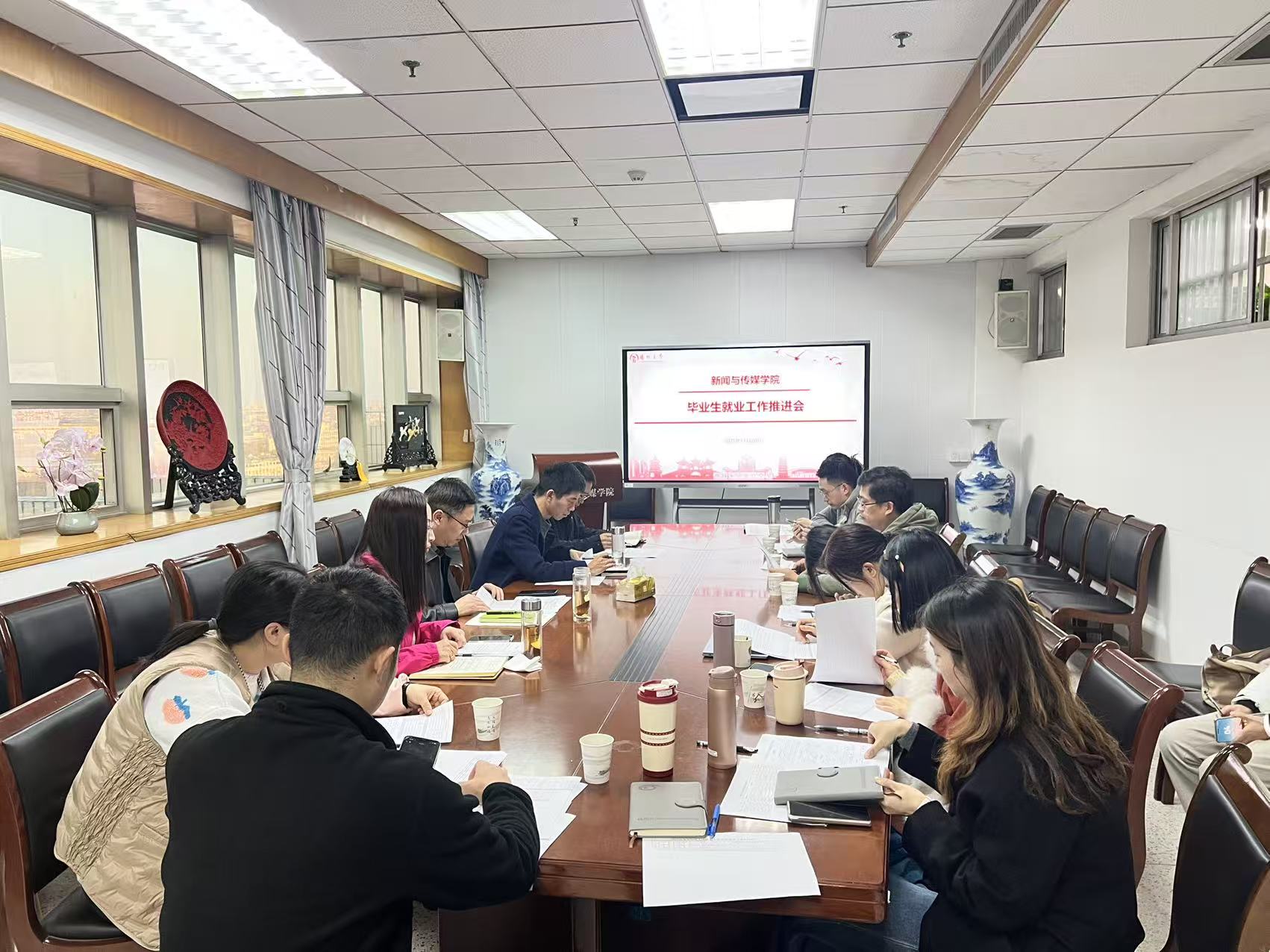 11月20日下午,我院在荷花池校区教学主楼1509会议室召开毕业生就业工作推进会。院党委书记吴锡平,副院长虞文俊,院党委副书记吴伟,院长助理张书端,各专业主任、全体辅导员和2025、2026届毕业班班主任参加会议。