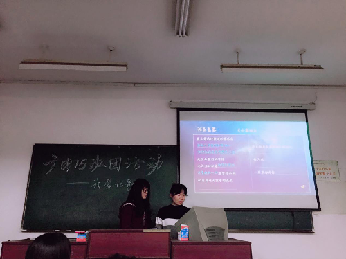 (两班团支书赵晗、杨素在主持活动)