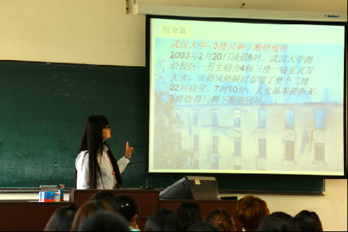 本着防患于未然的原则,旨在于让同学们更加深刻的了解常见的安全知识与问题。让他们的大学生活多一份安全,少一些危险。上周四早晨七点我院摄影1501班举行了安全知识主题教育班会,邀请了团委学工办的狄老师和广电的版主团支书旁听。本次班会通过图片文字视频等让同学们更加了解安全问题,为了同学们更加记牢安全知识,他们班还举办了安全知识竞赛。