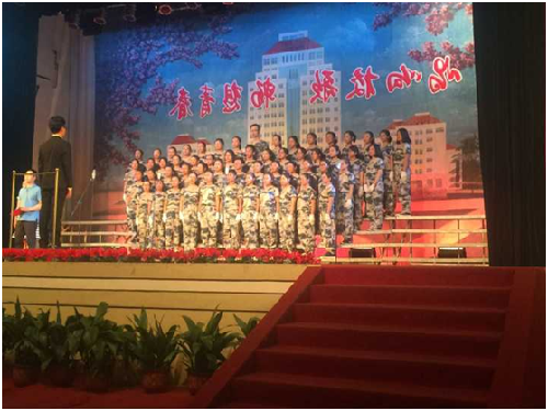 (图为广电16班正在进行合唱比赛)