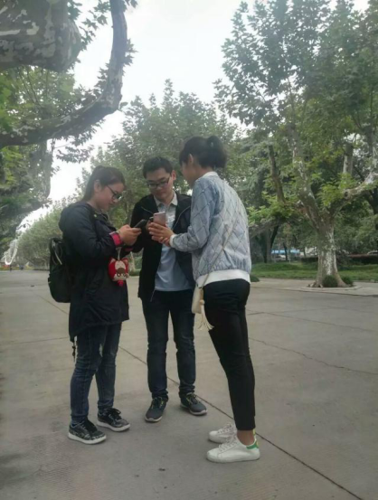 班长在文汇路校区请路人帮忙投票