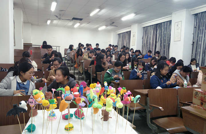 2016年11月21日晚自习,从主楼106教室里传来阵阵欢声笑语,只见低头用功的教技1601班的同学们,在学姐的指导下,进行了手工活动,童心一下就被吊起,同学们的手工都不错,增进了友谊与美好的记忆。