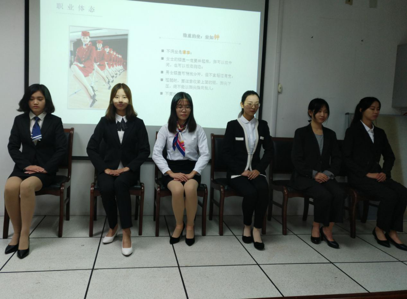 图为礼仪部同学向我们展示坐姿
