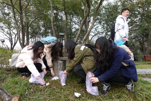 广电班响应“雷锋月”,倡导雷锋精神,几名同学组织前往荷花池公园捡垃圾。