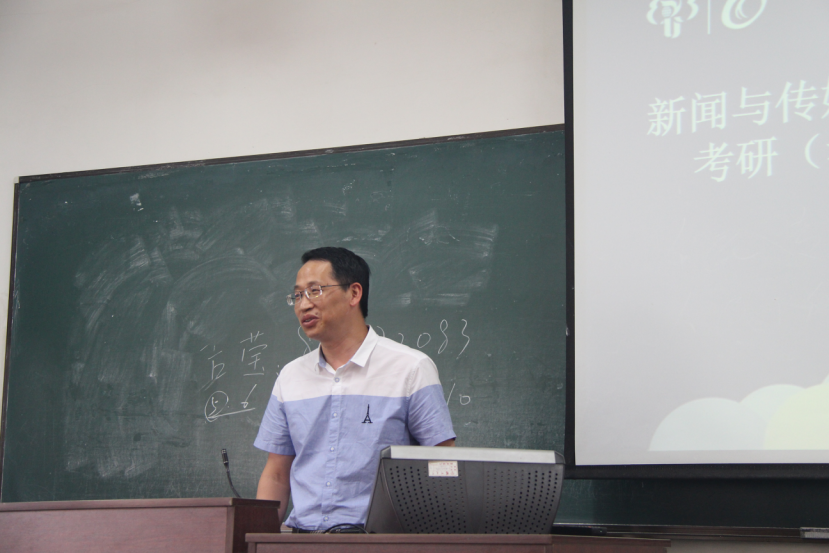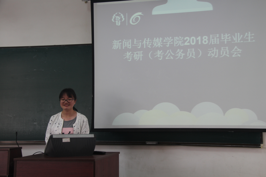5月24日下午三点至五点,新闻1401班以及校研工部副部长高明国老师、院党委副书记戴世勇老师、院广电专业主任柏红秀老师、院团委书记吴伟老师、本班班主任和部分2017届考研考公毕业生,在主楼e223教室举办新闻与传媒学院2018届毕业生考研(考公务员)动员会(广电专业)