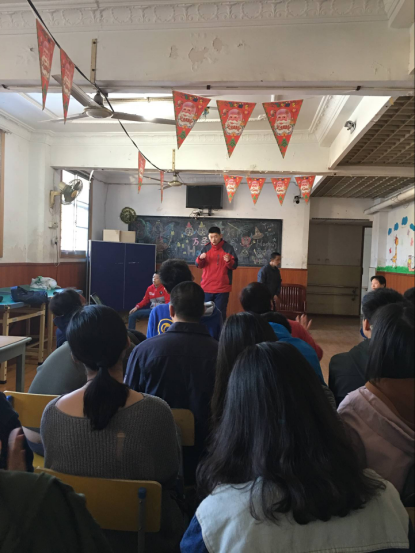 在何老师的带领下,我们组织有序地来到了爱心阳光托养中心,为疗养院的疗养院的孩子们带来了水果、牛奶和零食。开场,何老师详细地给大家讲述了本次活动的背景,并且鼓励大家日后能够继续地参与到类似的活动中,将爱心继续传递下去。大家深有感触,颇为感动,也更加投入地参与到此次活动当中。活动在查涵洋的主持下缓缓拉开了帷幕,接着,恽剑辉、夏文婧、唐聪聪等同学相继上台表演节目。随着活动的开展,同学们与疗养院的孩子们的互动渐渐多了起来。就在这样和谐温暖的氛围中,大家渐渐熟悉起来。疗养院的孩子也为我们准备了节目,虽然他们的表演并不流畅、并不具有美感,但大家看得很认真,很投入,时不时地为他们鼓掌,加油。那一刻,儿童们不觉得自己与别人有什么不用,脸上洋溢着自信的笑容,眼睛里流露的是幸福的目光,而同学们也为之感动,明明自己比他们年长成熟,却清晰地感觉到从他们身上学到了坚强、得到了力量。最后,在疗养院的工作人员的引导下,全体同学和疗养院的孩子们一起上台,用手语表演了《感恩的心》,每个人都很认真的参与,从而将活动推向高潮。最后,大家在何老师的组织下,有序、安全地回到了学校。