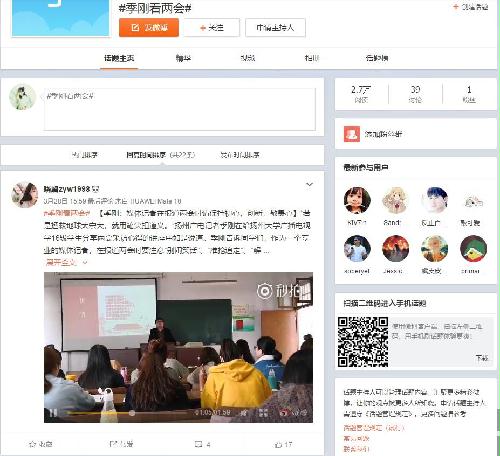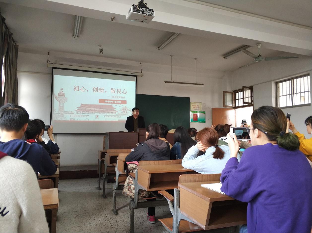 扬州广电的记者季刚前来给我们分享他在两会的所见所闻所感,同学们通过这次的分享也学到了很多。并且在微博上发起 #季刚看两会# 的话题,在话题下分享自己的感受。