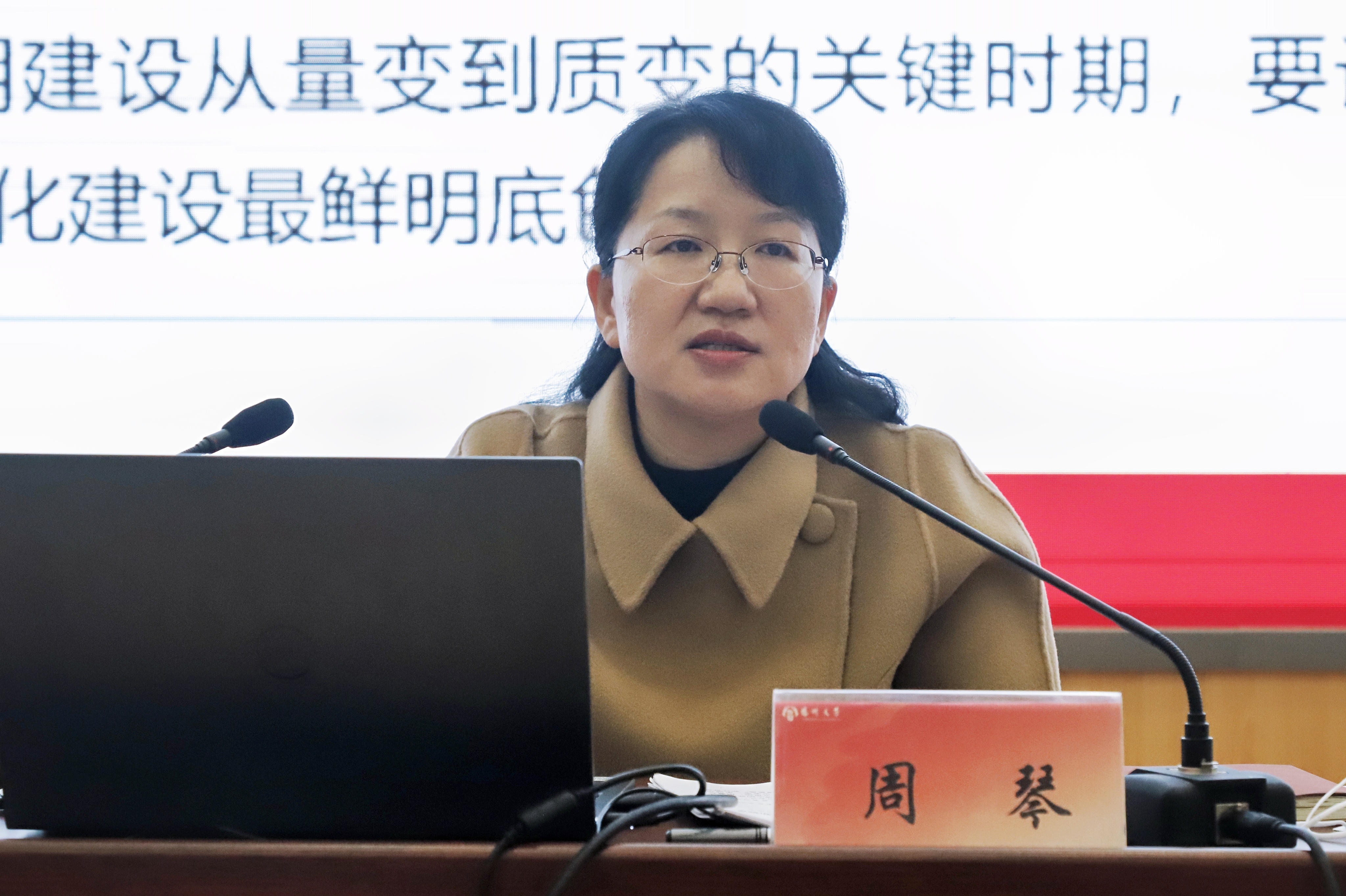 在接下来的《种好从严治党“责任田”,筑牢拒腐防变“防火墙”》党风廉政教育专题辅导报告中,周琴通过鲜明的数据,分析了当前全面从严治党和反腐败斗争的形势;着重介绍了近年来我国在大力推进党风廉政建设过程中,逐步建立并完善的法律法规体系和长效机制;从纪律、规矩、底线、责任等方面,警醒党员不断锤炼忠诚、干净、担当的政治品格。她强调,全体党员要深刻领会省党代会报告精神实质、核心要义和实践要求,做到入心入脑、融会贯通,切实把思想和行动统一到省委最新决策部署上来。自觉扛起“争当表率、争做示范、走在前列”光荣使命,以强烈的担当精神、拼搏意识,立足岗位、争创佳绩。