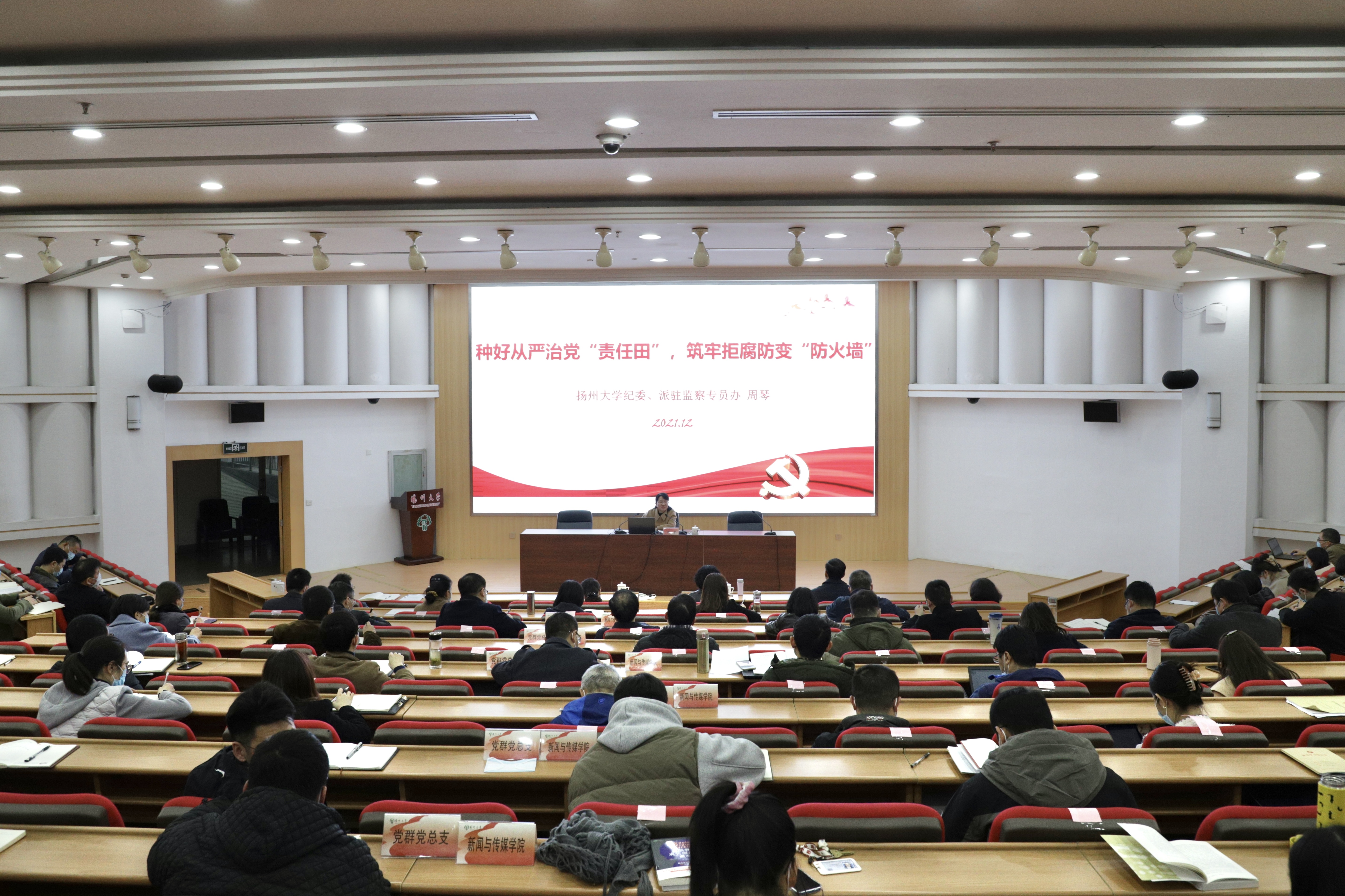 12月16日下午,我院党委与党群党总支在荷花池校区逸夫图书馆报告厅联合开展学习省第十四次党代会精神暨党风廉政建设专题教育辅导。校纪委书记、派驻监察专员周琴应邀作专题教育辅导报告。