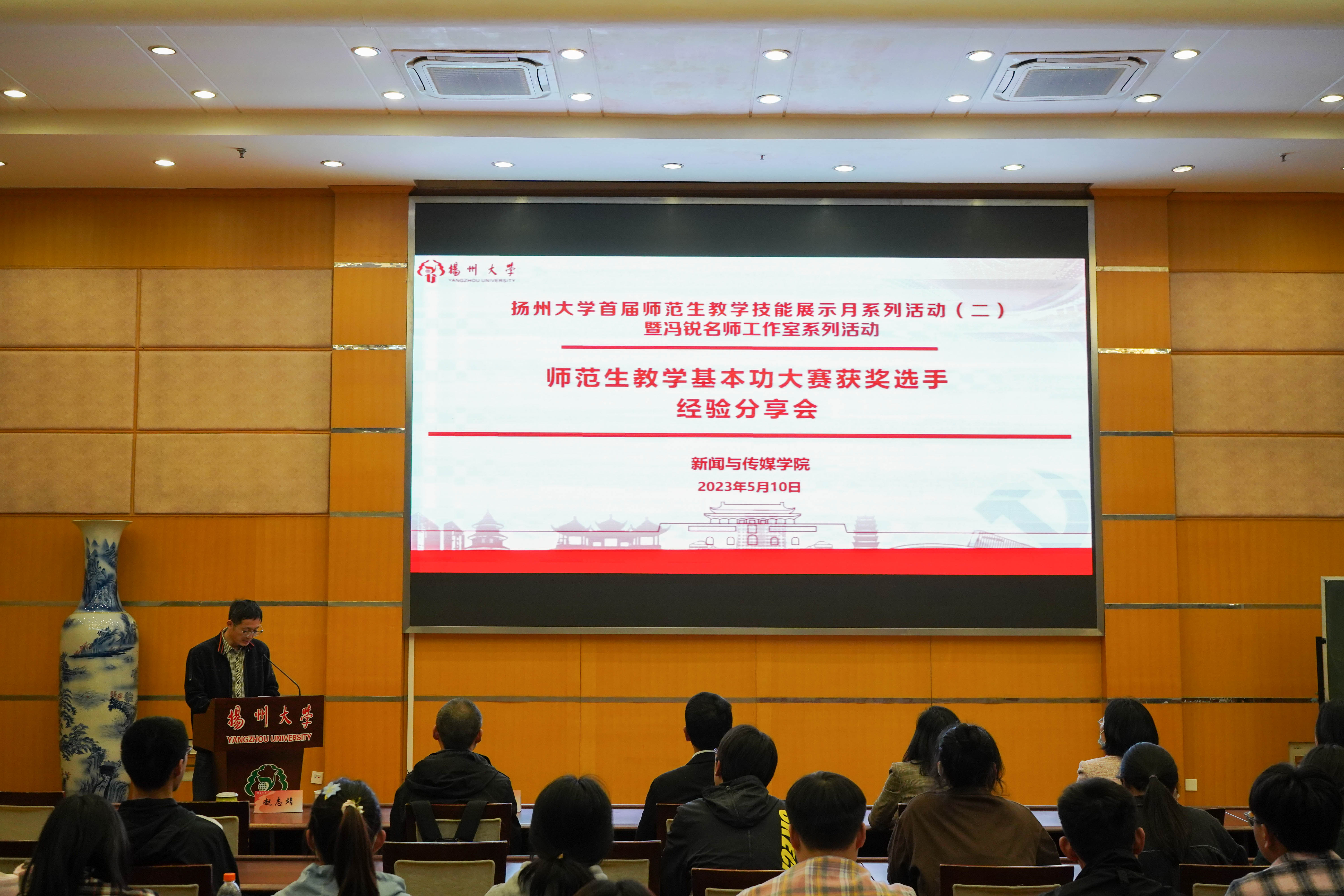 为提高师范生教育教学能力,强化师范生教育实践能力,5月10日下午,我院在荷花池校区主楼二楼多功能厅举行扬州大学首届师范生技能展示月系列活动暨冯锐名师工作室系列活动之师范生教学基本功大赛获奖选手经验分享会。