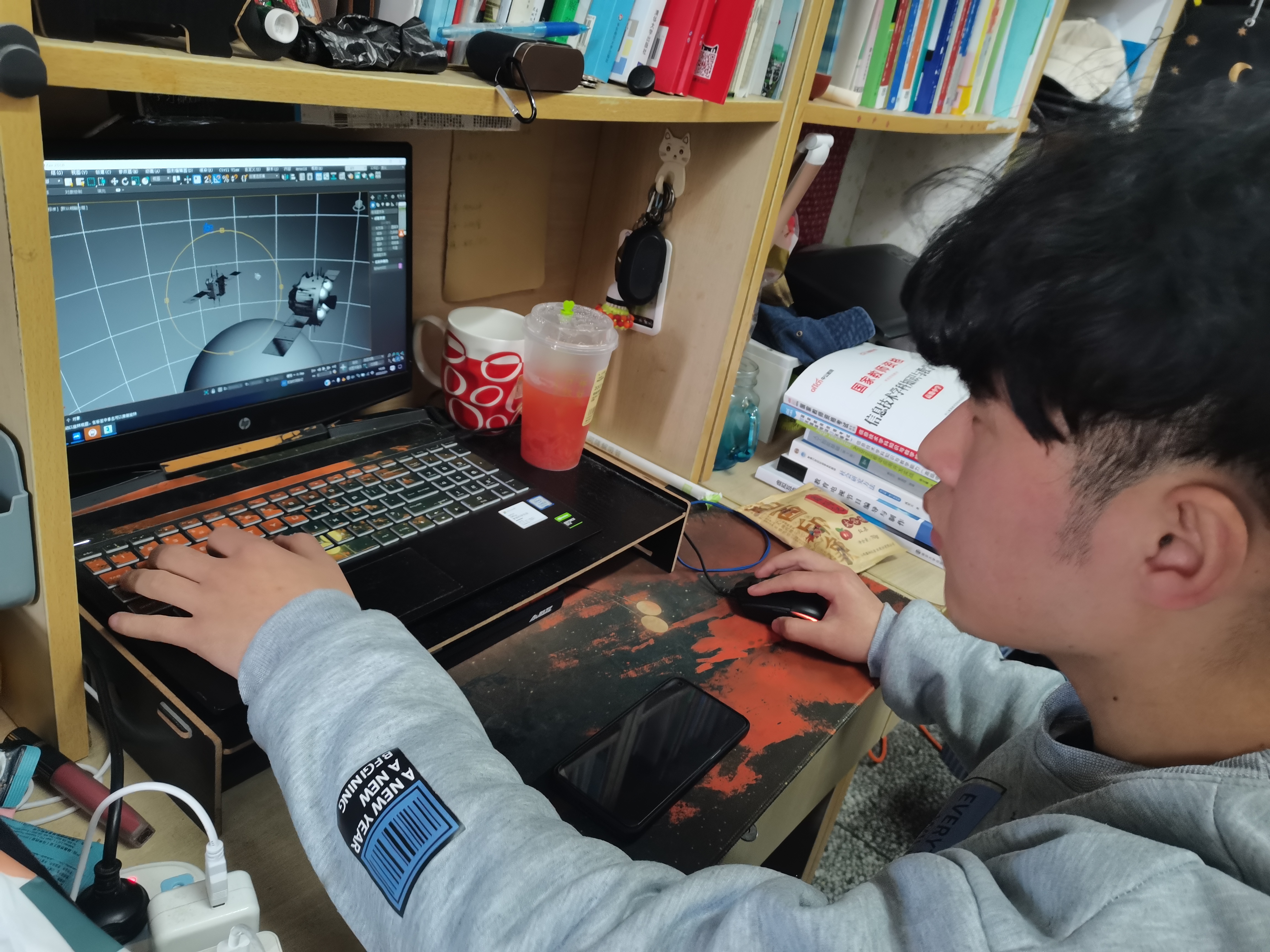 虽然学院为学生们开设了有关3D建模的课程,但是在项目进行中依然存在着很多不可避免的问题。为了复刻还原高精密度的航天器材,让画面更加生动,王子煜和团队成员们光是短短的发射视频就观看了上百遍。在完成三维模型的制作中,更是需要团队成员们仔细测量每一段的数据,研究发射每一步的细节。