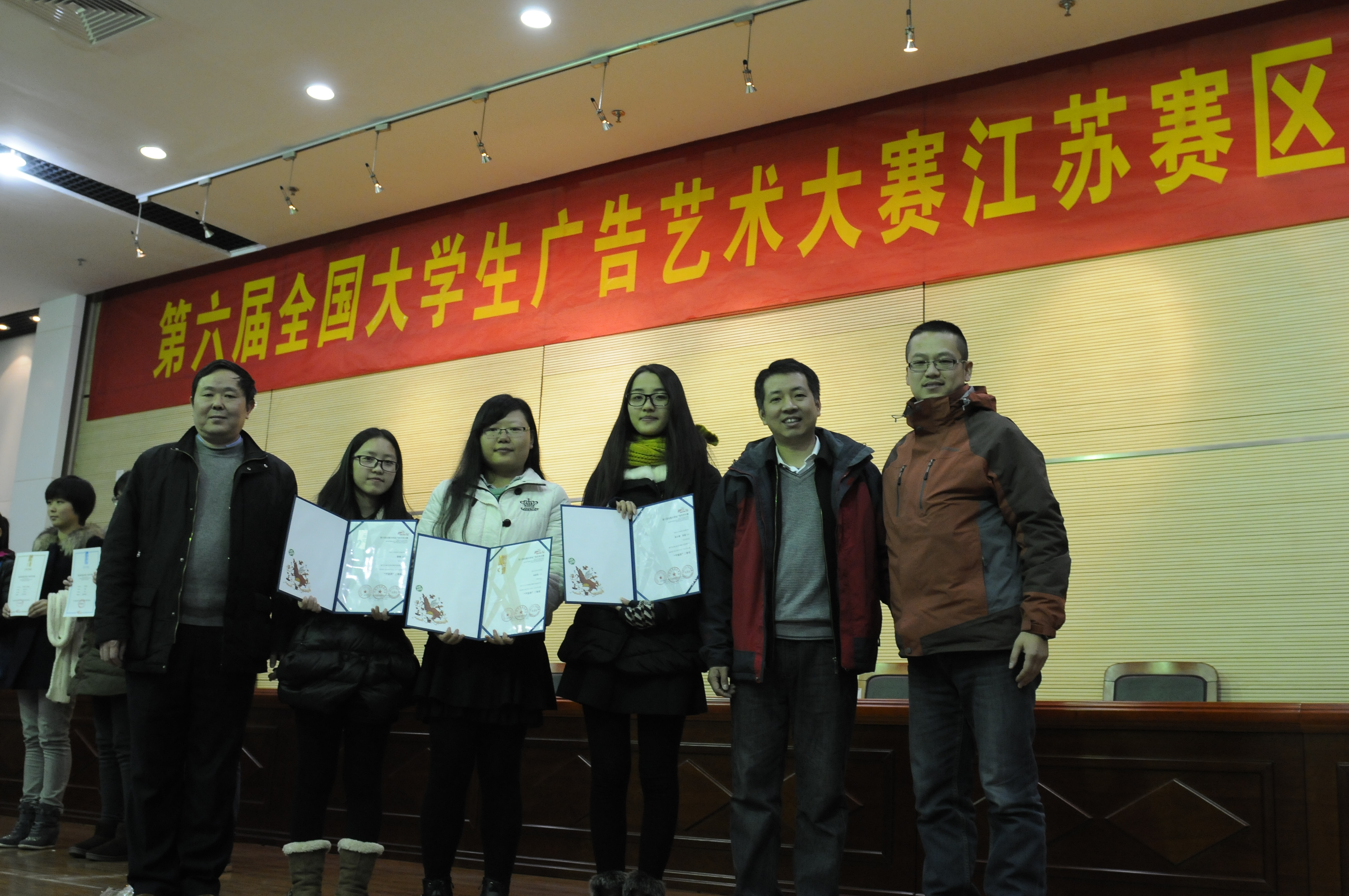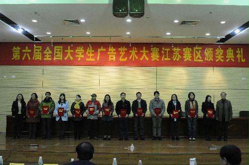 12月10日,第六届全国大学生广告艺术大赛江苏赛区颁奖典礼在南京财经大学举行,我院杨咏老师、王勇老师分别获得江苏赛区优秀工作者、优秀指导教师称号,此次大赛我院选送的广播、平面、动画等类型学生作品共计获得省级等级奖9项,省级优秀奖15项,国家级等级奖3项,国家级优秀奖6项,不论从获奖数量还是等级上,我院成绩均位列全省前茅。