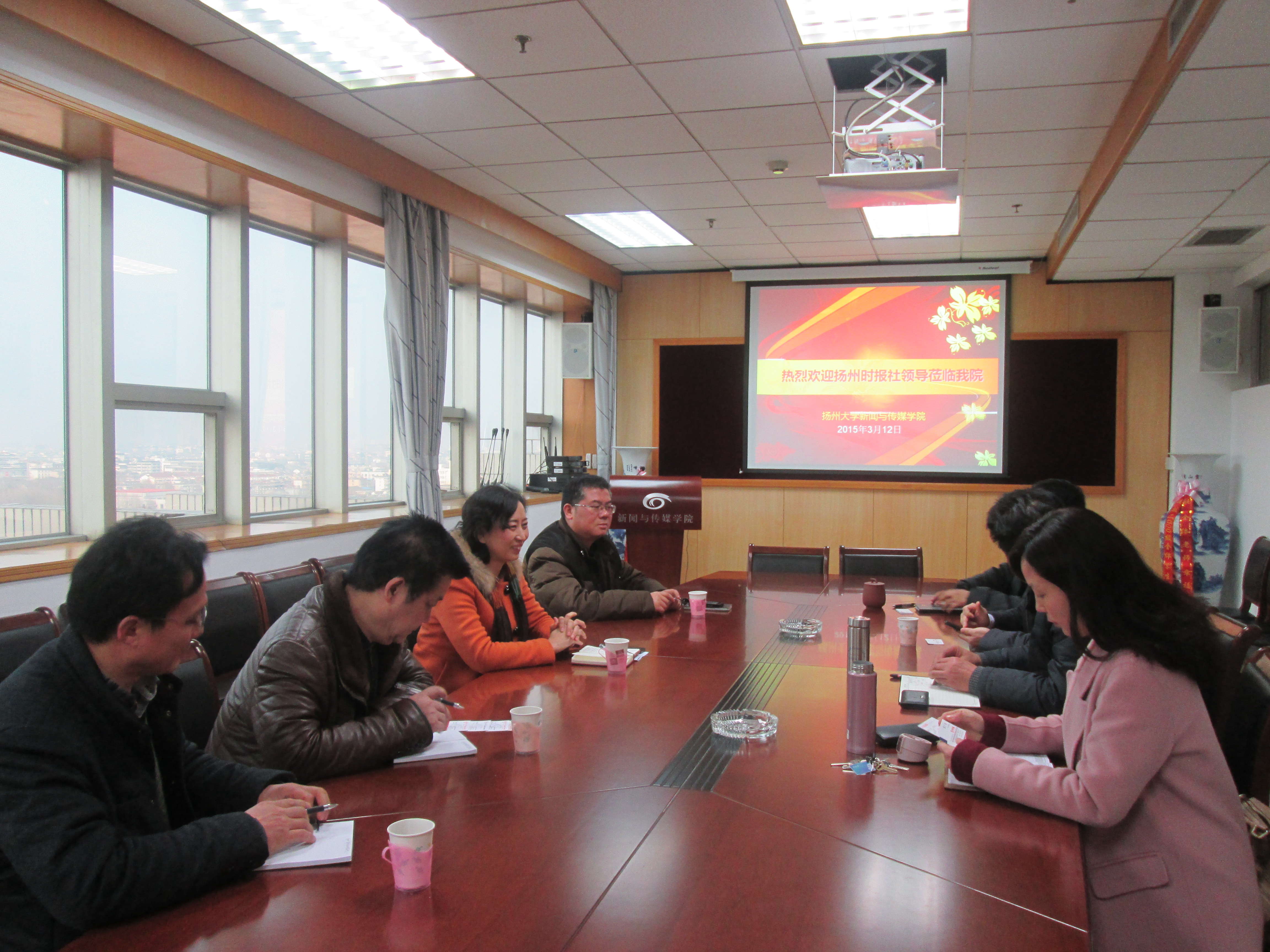 3月12日,扬州时报张广秀总编一行来学院交流。学院向客人介绍了办学宗旨、发展规模、专业特色、研究领域等方面情况,带领时报的同志参观了学院的实验室、专业教研室、录音棚等场所。双方表示,新闻业界要发挥贴近百姓、社会资源丰富的特点,学校要发挥师资力量强、站在理论前沿的优势,加强合作,好好谋划,充分利用自身资源,为校企合作搭建好发展平台。学院与报社就推进影视艺术创作、数字媒体设计、摄影摄像、栏目策划与包装、在职培训、学生培养、毕业实习等方面形成合作意向。