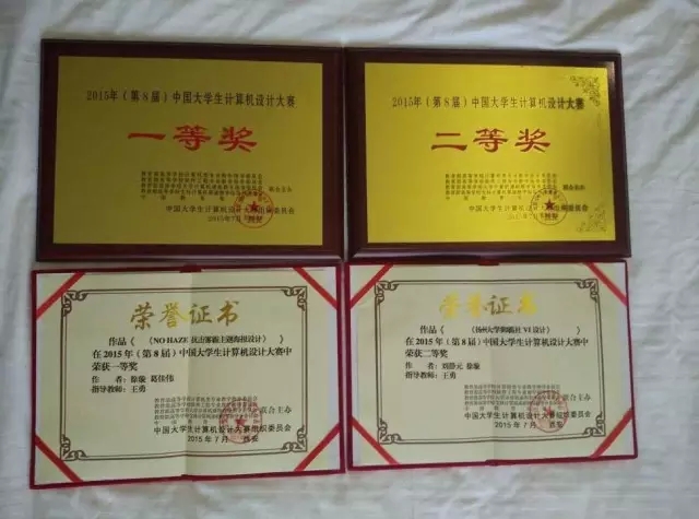 随着2015年(第8届)中国大学生计算机设计大赛渐渐落下帷幕,我院学子的比赛结果也陆续揭晓。在今年的中国大学生计算机设计大赛中,我院共有4组作品冲击国赛,最终获得2个一等奖、1个二等奖和1个三等奖的好成绩。其中,由王勇老师指导、影动1201班徐璇、葛佳伟同学创作的平面作品《NO HAZE抗击雾霾主题海报设计》以及何亭老师指导、教技1201班施丹萍、王艳霞、李演祺同学创作的三维动画作品《观音禅寺》从众多作品中脱颖而出,获得了本次比赛的一等奖。由王勇老师指导、影动1201班徐璇、刘静元创作的平面作品《扬州大学御霾社VI设计》获二等奖,由张浩老师指导、教技1201班陈赐福、丁晶晶、陈扶摇同学创作的微课类作品《计算机病毒及防范》获三等奖。