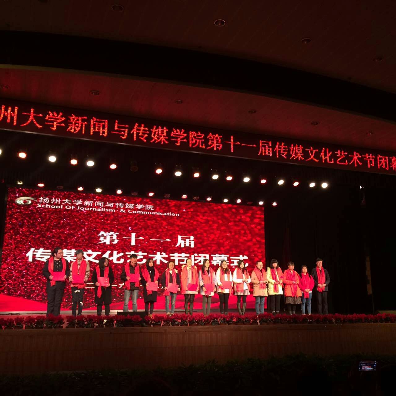 12月26日下午,新闻与传媒学院在荷花池校区大学生活动中心三楼小剧场举行第十一届传媒文化艺术节闭幕式。校党委副书记、副校长叶柏森,校党委宣传部、教务处、学工处、研工部、教学评估中心和校团委等有关部门负责同志应邀出席闭幕式并为获奖师生颁奖。院党委书记裴家宝等院领导和四百多名师生一同参加了活动。