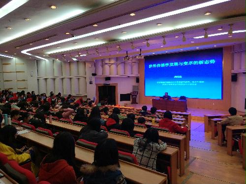 11月16日下午4时,美国布法罗纽约州立大学传播系教授洪浚浩教授受邀来访我院,在荷花池校区逸夫图书馆报告厅做了一场题为《世界传播学发展与变革的新态势》的学术报告。此次报告会由新传学院副院长张浩老师主持,学院蔡之国、杨健、陈刚、石晋阳、邓天白、张盼盼、邱晶晨等近十位从事传播学相关领域研究的专业教师参加了下午早些时候在学院1509会议室举行的座谈会并出席了本次报告会,学院17级全体同学和广电15、16级的同学以及戏剧与影视学部分研究生同学参加了此次学术报告会。