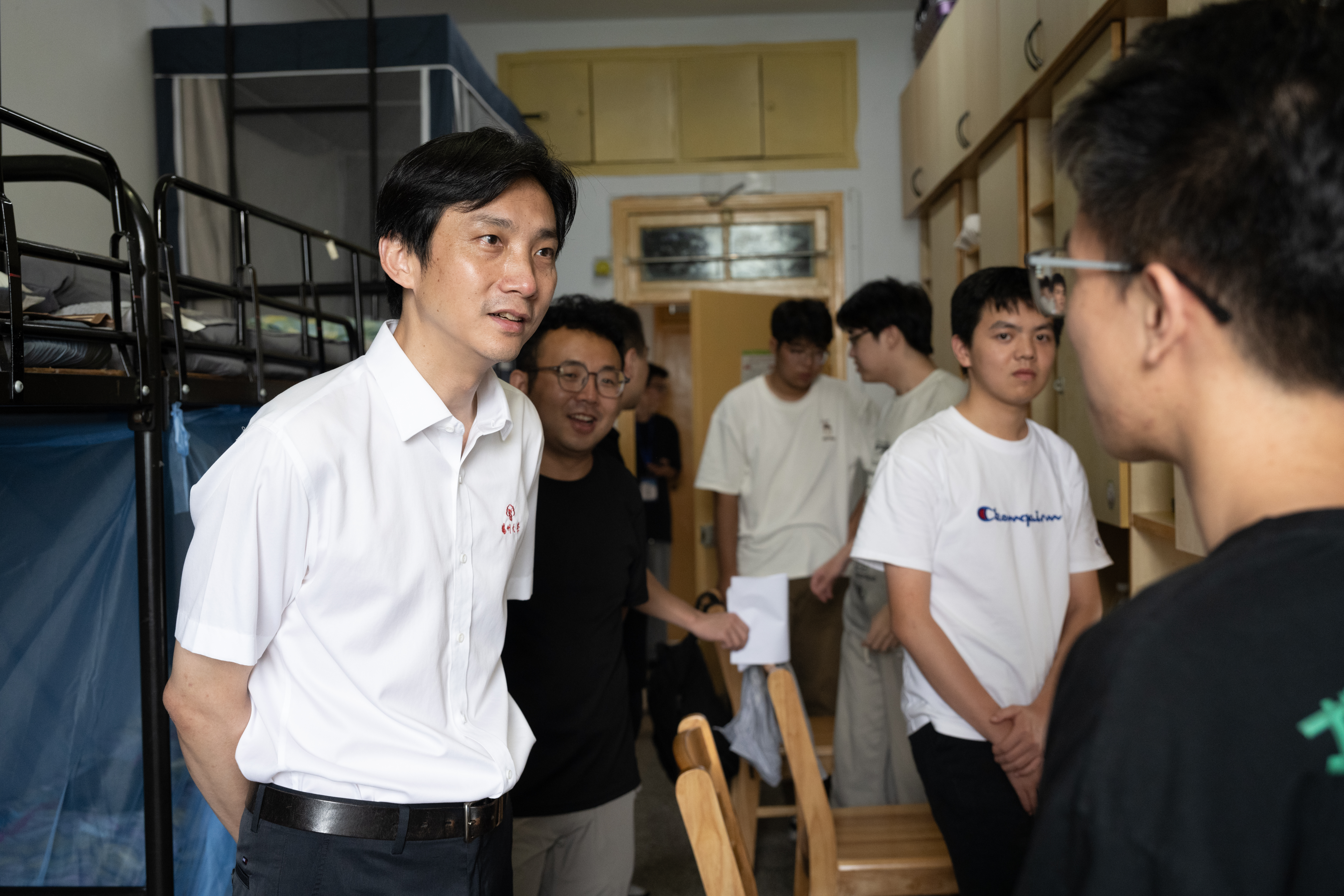 迎新结束后,全体院领导走进学生宿舍看望2024级新生,询问新生同学们的基本情况、来校报到的所感所想、大学阶段的基本规划,了解他们的现实需求,鼓励同学们提前树立人生目标、明确生涯规划、实现大学价值。
