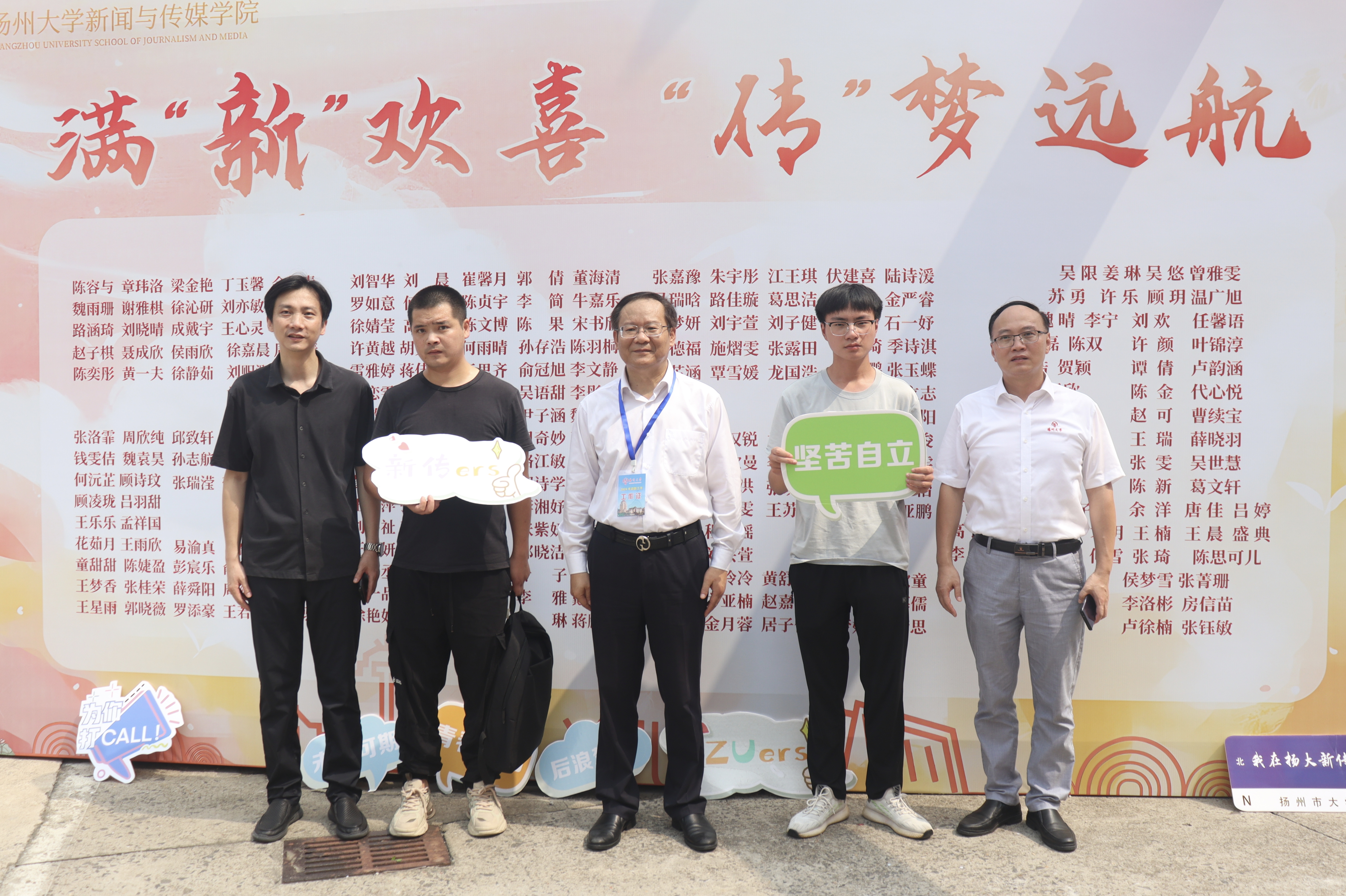 在荷花池校区学生宿舍区,校领导们饶有兴致地观摩了 “连中三元”“大学愿望墙”等学院特色活动,对学院长期以来重视学生专业素质培养,鼓励学生积极参与实践创作的做法表示赞赏,并在新生姓名墙前与新生合影留念,勉励他们:聚焦行业前沿,重视专业实践,坚持脚踏实地,努力成为能够适应时代要求、满足社会发展需求的新型传媒人才。